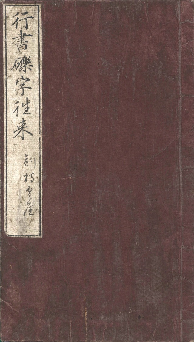★行書礫字往来 【判型】縦長本1冊。縦267粍。 【作者】中沢雪城(俊卿・子国・行蔵)書。 【年代等】慶応2年以前作。江戸後期刊。[江戸]至誠堂蔵板。椀屋喜兵衛(万笈閣)売出。 【備考】分類「往来物」。袋綴じ展開収録。『行書礫字往来』は、万延元年頃、巻菱湖書『礫字往来』のうち上巻前半部(「…斟酌・愛相・用捨」まで)を記した陰刻手本。本文を2行・無訓で記す。雪城は菱湖門人だから、菱湖の手本を臨書したものであろう。雪城が没した慶応2年以前の作で、体裁その他から江戸末期刊であることは間違いない。最終丁ののどに「一ノ十七止」と記すように続刊の形跡を残すが、明治初年後印本の巻末広告にも1冊本の旨を記載するので、残りは未刊に終わったのであろう。従って、『礫字往来』の完本は万延頃の写本(謙堂文庫本)のみである。SE03016