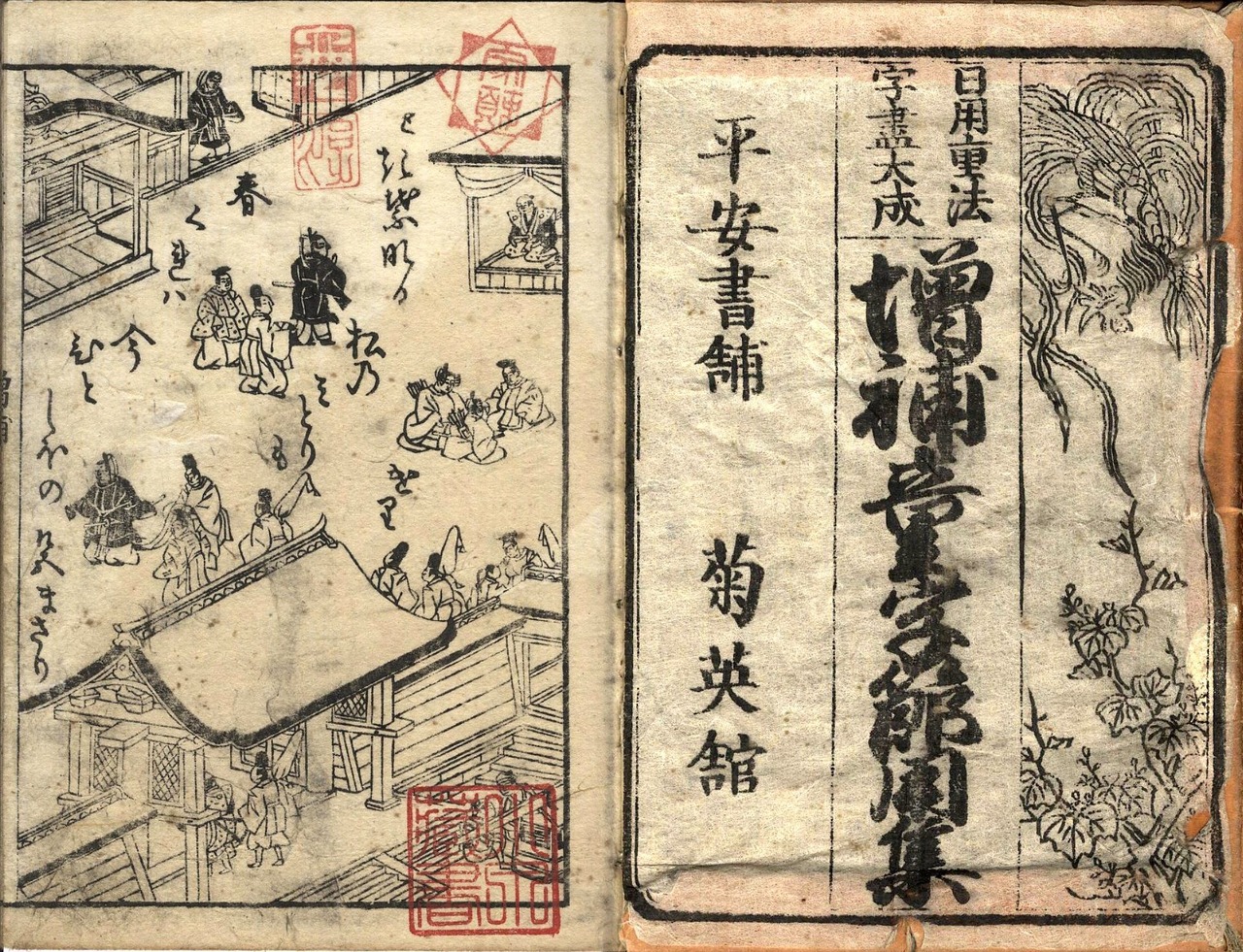 【判型】小本1冊。縦156粍。【作者】浅田恒隆編。【年代等】安永5年2月刊。[京都]菊屋安兵衛(菊英館)板。【備考】分類「往来物・節用集」。イロハ毎に子どもの学習にふさわしい基本語彙を集めた節用集兼往来物。意義分類としての部門分けはない。巻末広告によれば「通例『節用集』ニ洩タル世話字絵抄、重宝入」とあるように、通常の節用集とは異なる語彙をイロハ順に六行・付訓で掲げ、稀に割注を施す。前付や頭書に「小笠原諸礼之図式」「当流躾方」「五穀并野菜字尽」等の礼法、「家名尽」「禅門名尽」「尼名尽」等の字尽、「初学文章抄」「手形証文書様」等の消息文例、「九九之次第」「八算掛割之術」等の算法等の記事を収録しており、全体として往来物と節用集を折衷したような構成である。