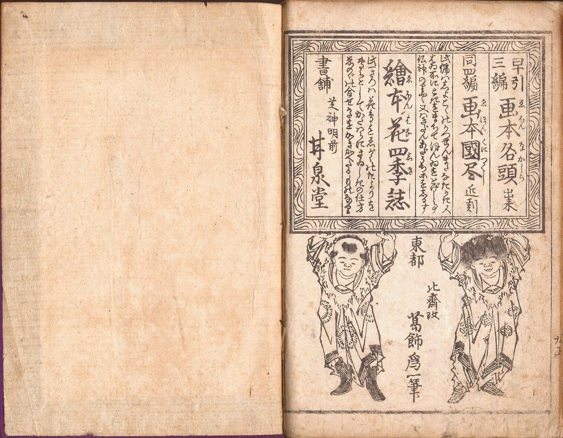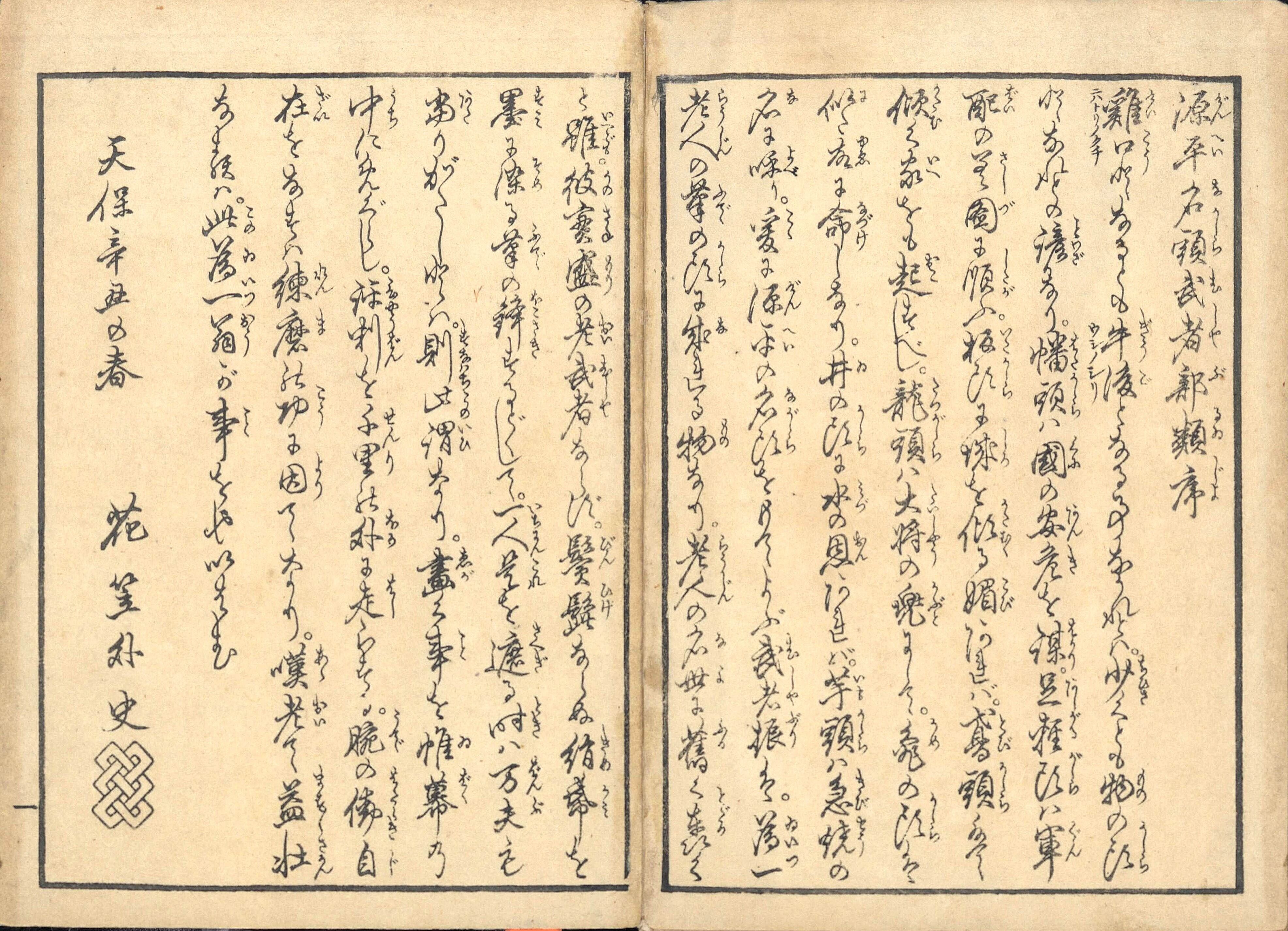 【年代等】・天保12年春、花笠外史序。天保12年秋刊。明治初年再刊。[江戸]和泉屋市兵衛板。