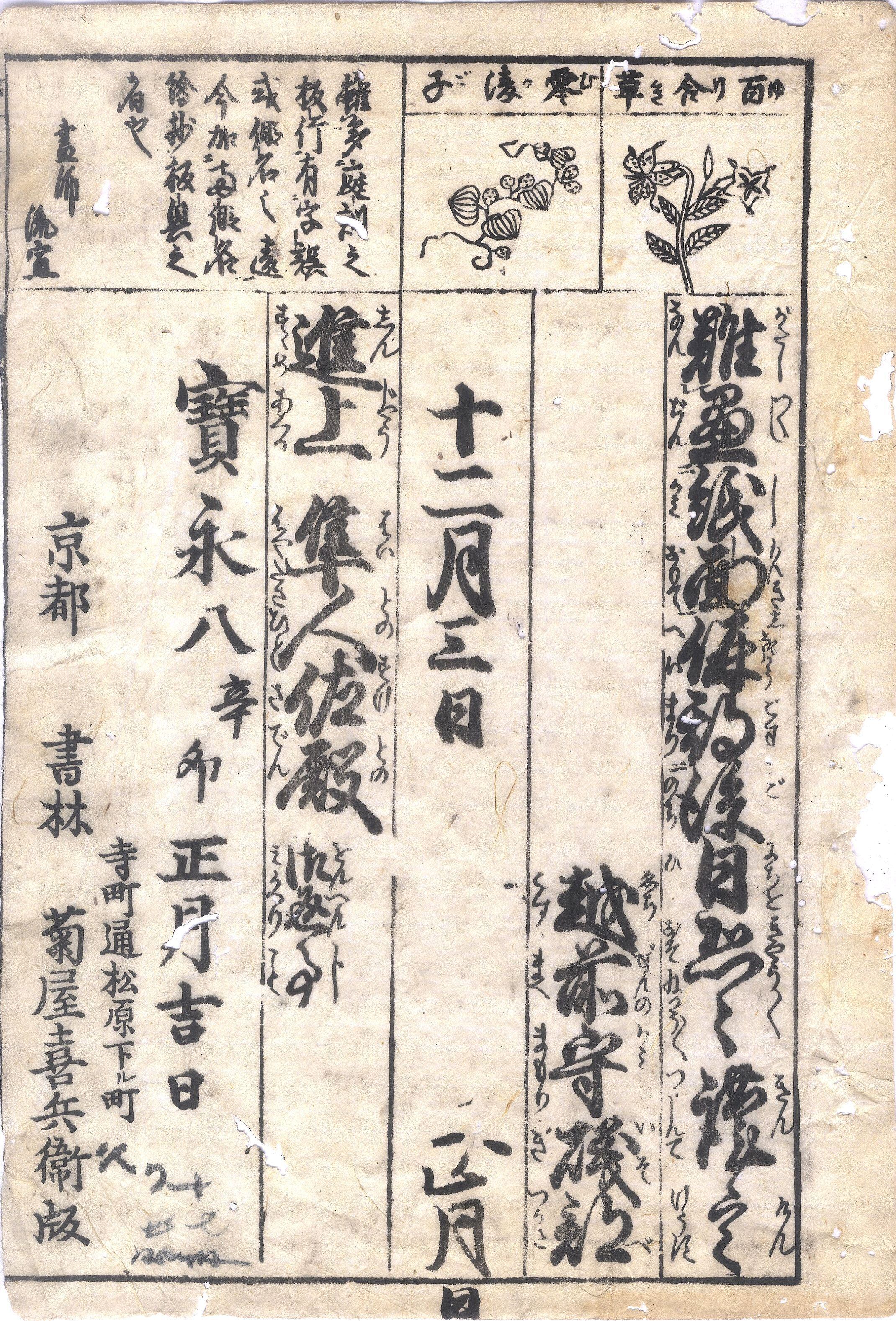 【年代等】宝永8年1月刊。[京都]菊屋喜兵衛板。