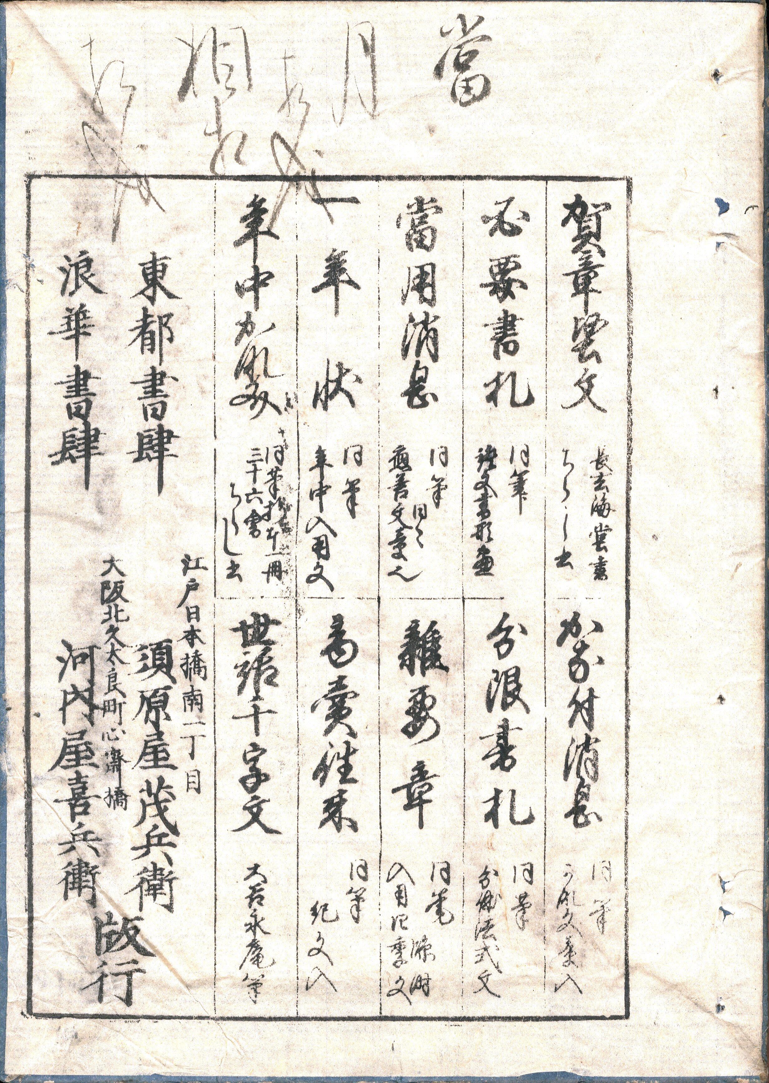 【年代等】安政3年冬書・刊。[大阪]河内屋喜兵衛ほか板。