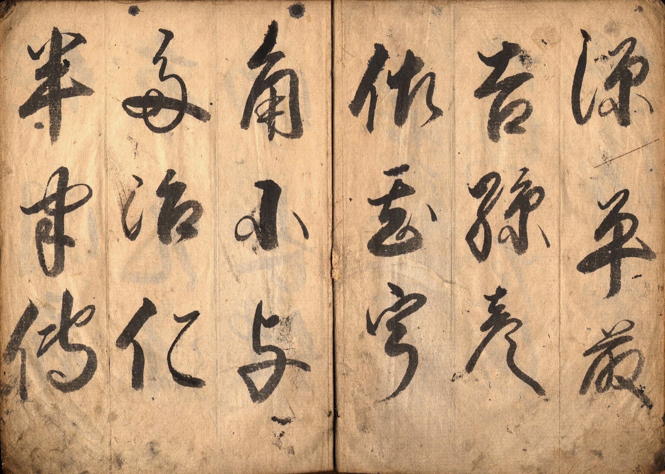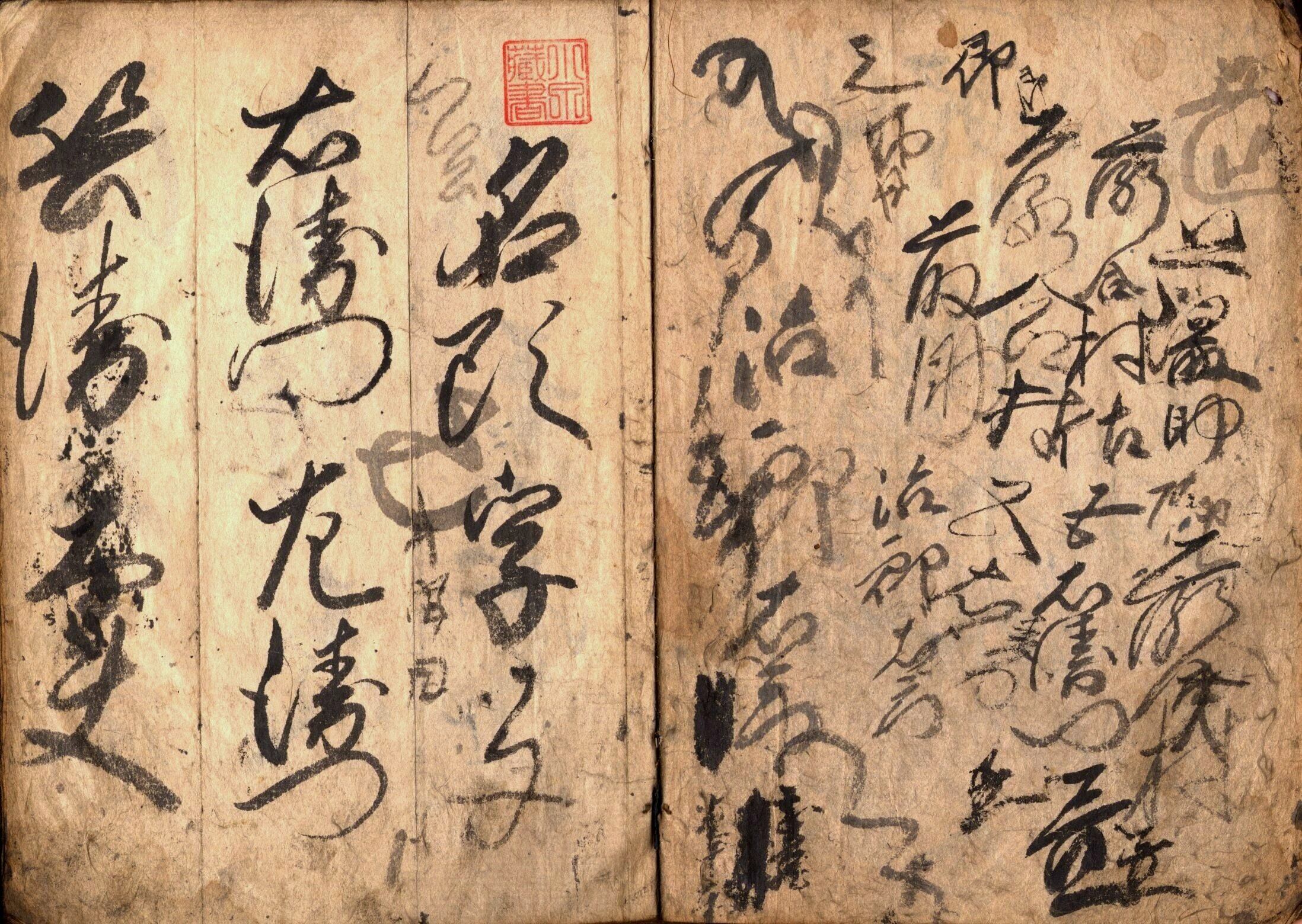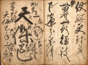 【備考】分類「往来物」。越後国刈羽(かりわ)郡落合村(現・新潟県柏崎市高柳町)で使用された手習本。「名頭字」「日記帳」「用文章(短文の消息文)」「覚」「証文類(預り申銀子之事ほか)」「村名附」「証文類」「離縁状」などを収録するが、異なる筆跡で「寅蔵」「藤助」「五右衛門」「治郎右衛門」等の署名があるから、兄弟や親類で使い回されたものと思われる。随所に悪戯書きが見られる。
