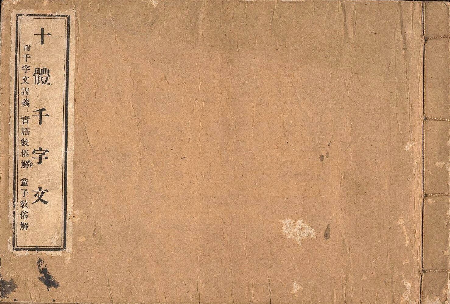 【備考】分類「往来物」。活版和装本。「十体千字文」は、本文の漢字を楷書・篆書・隷書・行書・草書など10種類の書体で綴ったもの。それに続く「千字文講義」は「千字文」の注釈書で、「考証」として要語に関する解説や典拠を付記する。「実語教俗解」と「童子教俗解」は、『実語教・童子教』の通俗的な注釈で、平易な口語で綴ったもの。