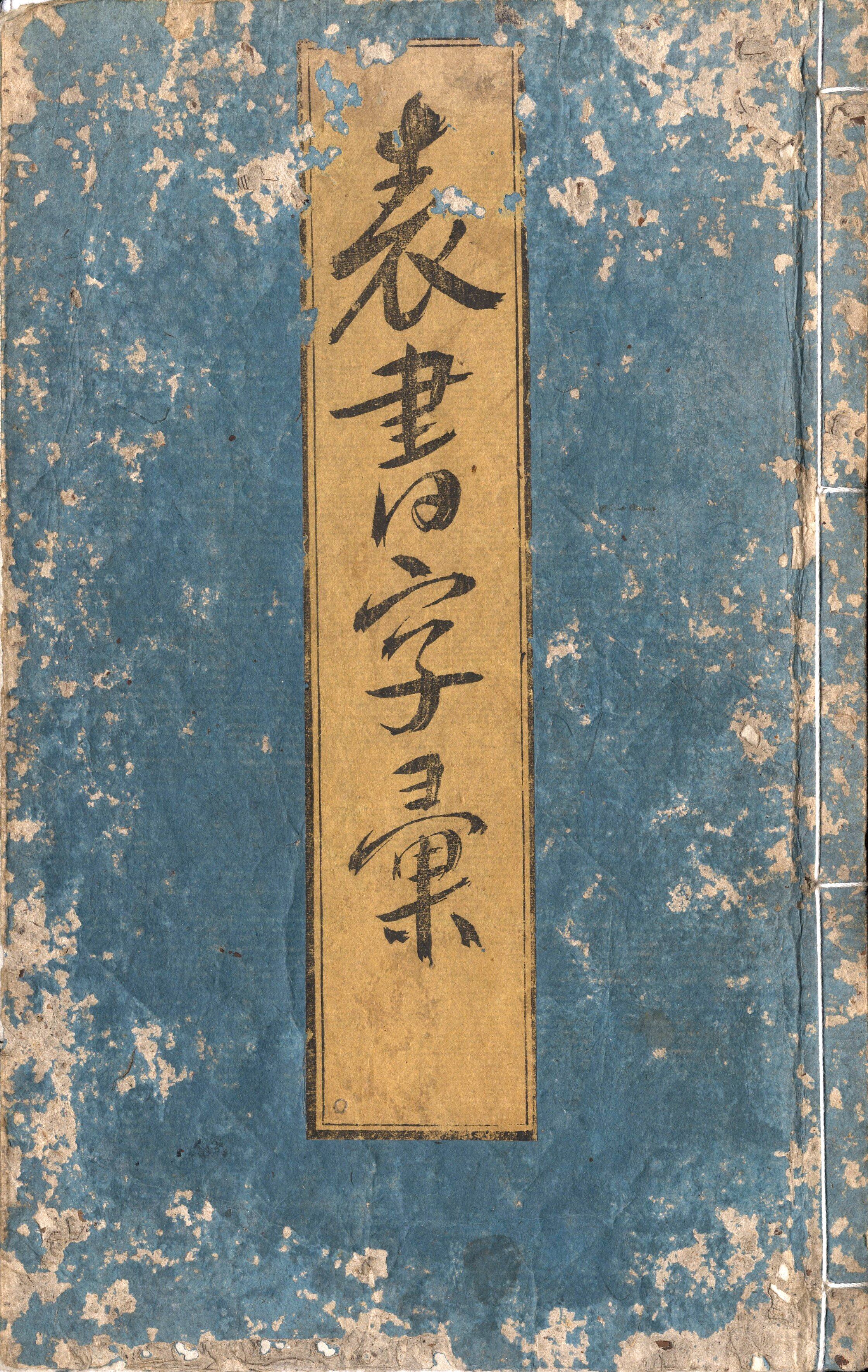【備考】分類「往来物」。『表書字筧』および『続表書字筧』は縦長本2冊。初編は、「表書」すなわち帳簿類の標題用語を記した陰刻手本で、「大福」から「改正」までの2字熟語と「十干・十二支」を楷書・大字・2行・無訓で記す。続編も同様に「五畿内五箇国」を始めとする日本国名や「帳の裏表紙」に書かれる語句を綴る。『表書字彙』は、これらに連なる往来物で『表書字筧』の補遺として編まれたもので、「歩銀」から「捨祐」まで「人の名尽」を含む表題用字を半丁に2字すつ楷書・大字・1行・無訓で記す。初編巻末広告によれば、まず『表書字筧』が編まれ、次いで、それに漏れた「帳の表紙を書に初心の便りとなる」語句と「人の名尽し」を加えた『表書字彙』が同一著者の手で作られ、さらに両書の補遺である『続表書字筧』が成ったもので、この三書によって「帳の表裏ともに揃ふ」とする。
