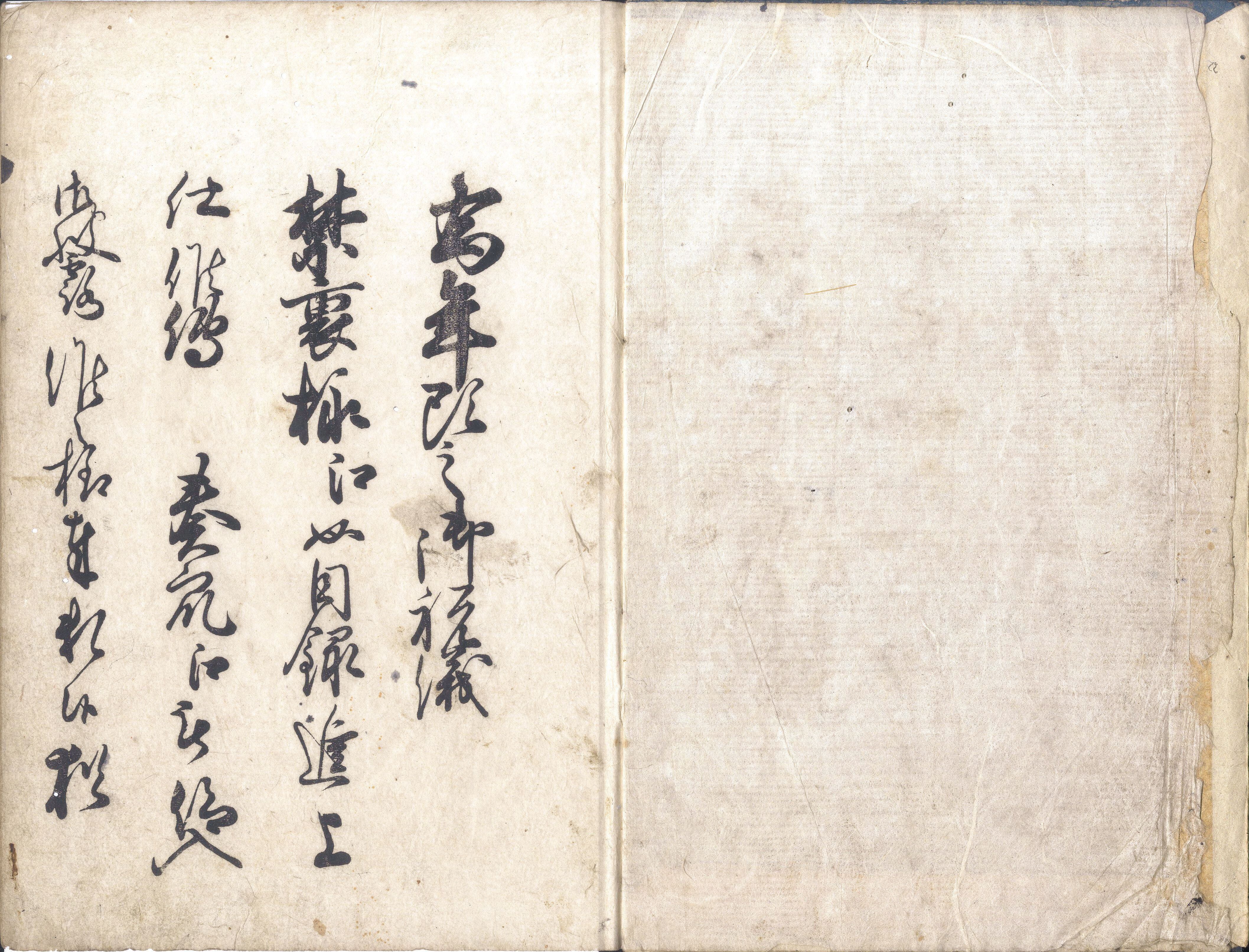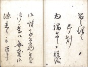 【備考】分類「往来物」。「為年頭之御祝儀、禁裏様え如目録進上仕候。伝奏衆え被仰入御披露候之様奉頼候…」で始まる「年頭祝儀披露状」から、「材木・板・縄・竹・石等を進上する状」までの14通と、「春来庭是桃花水…」など六編の詩歌を綴った大橋流手本。前半部の書状には武家公用向けの披露状や四季贈答の手紙、節句祝儀状等を収録する。本文を大字3-4行・無訓で記す。