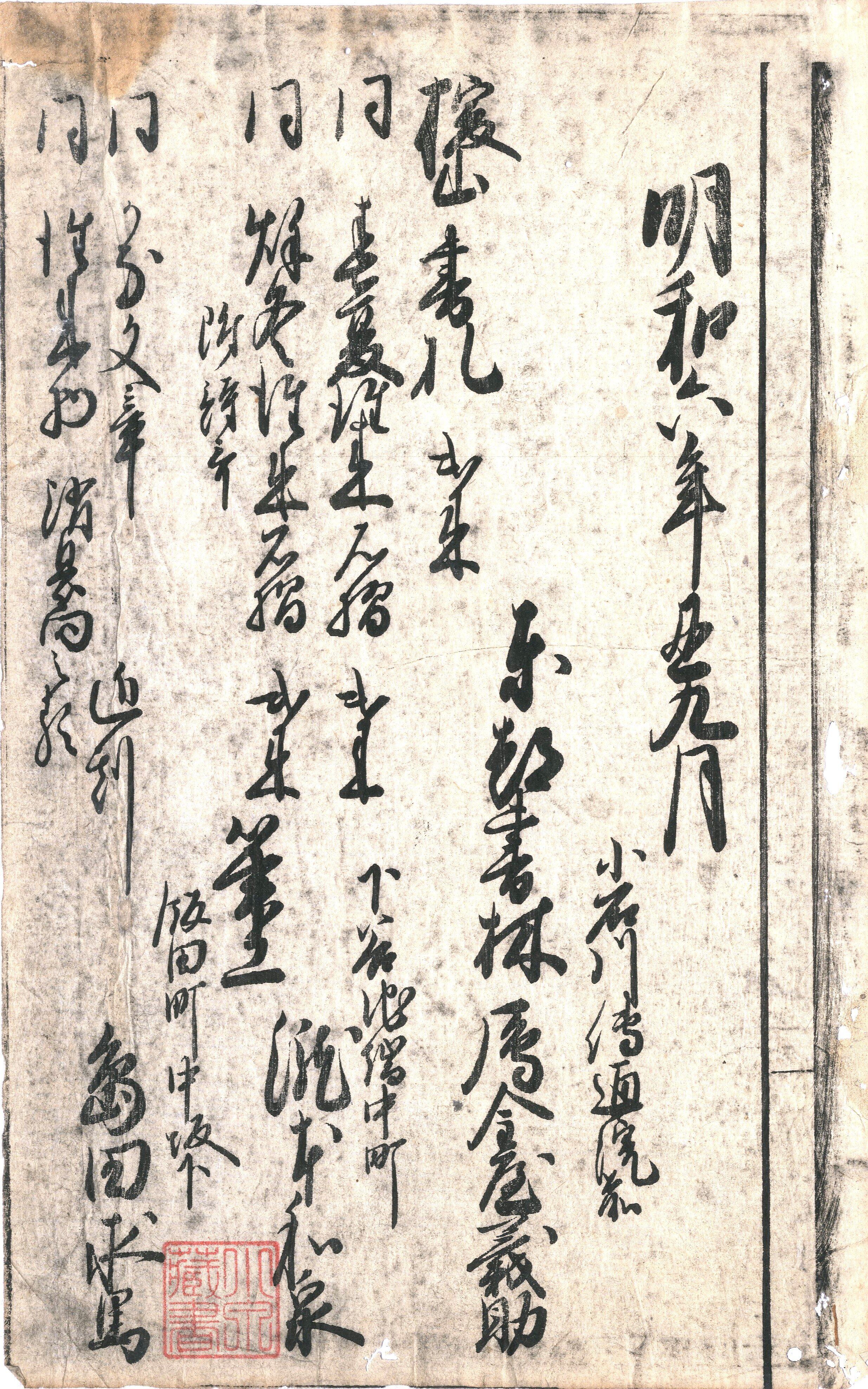 【年代等】春夏往来:明和6年5月書。明和6年9月刊。[江戸]雁金屋義助板。明和8年9月再刊。[江戸]雁金屋義助板。秋冬往来:明和6年9月刊。[江戸]雁金屋義助板。