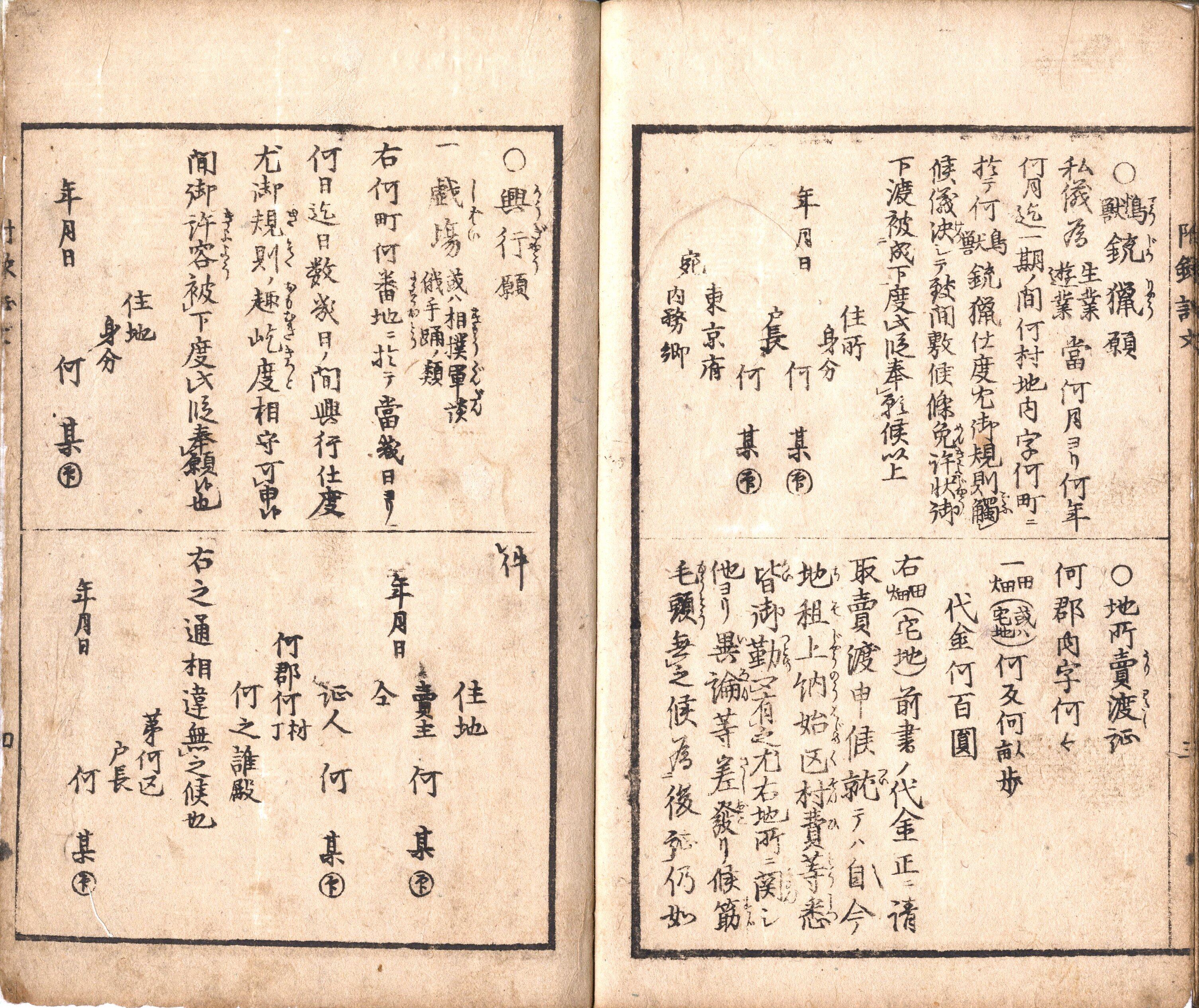 開化絵入文章〈附録諸証文〉[〈開化〉絵入文章・画入文章](3種) 【作者】鶴田真容作
