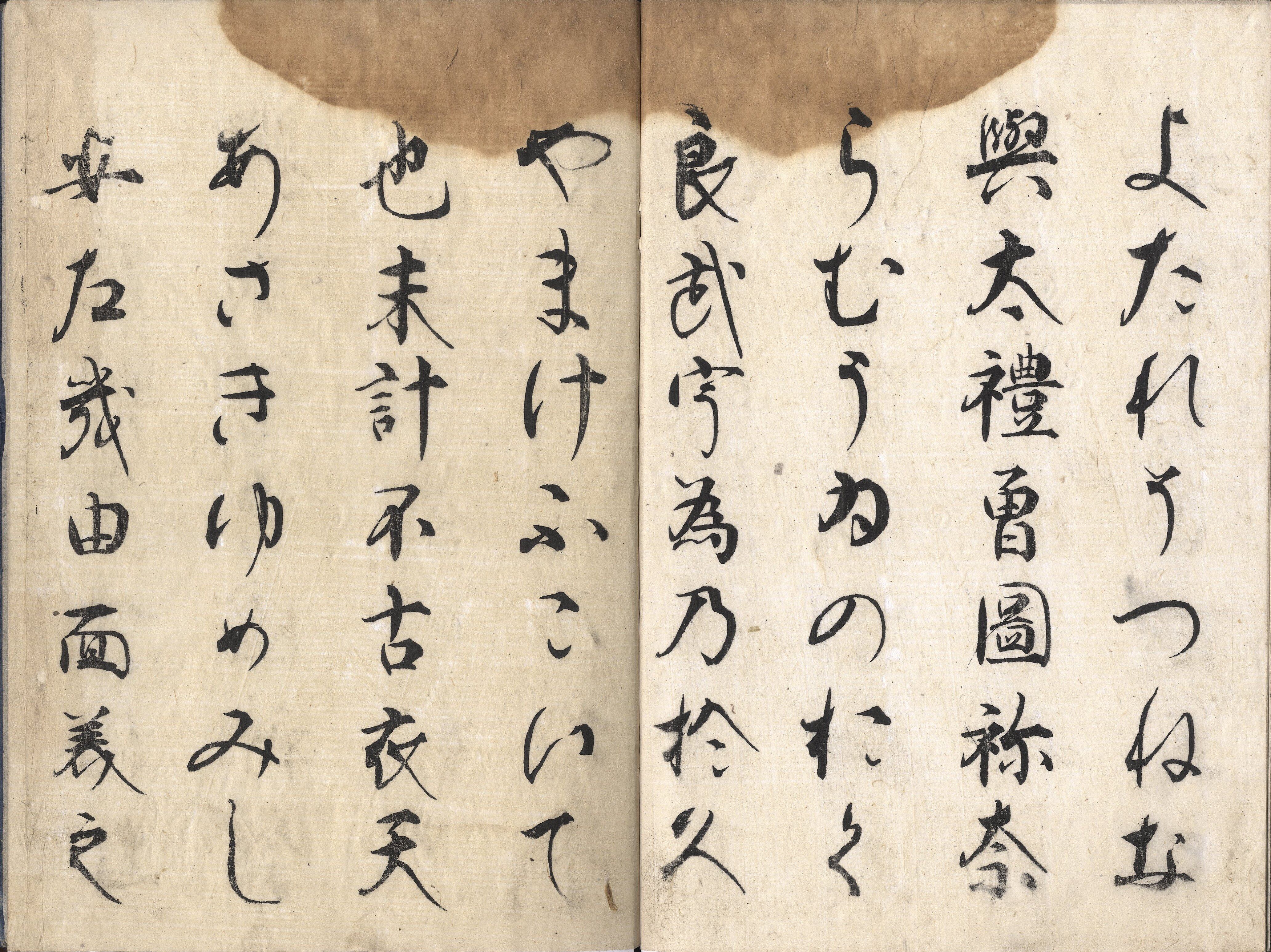【判型】大本3巻3冊。縦264粍。【作者】前田図南(五友亭)書・跋。【年代等】元禄11年1月刊。[京都]出雲寺和泉掾(元房)板。【備考】分類「往来物・書道」。標記書名は通称で、原題簽は日・月・星の巻順に『近衛流消息』『定家流消息』『光悦流消息』。近衛流・定家流・光悦流の筆跡を模した大字・無訓の手本で、各巻とも短文の消息文と平仮名・万葉仮名の「二体イロハ」および「数字」を綴る。例文は各巻で異なり、日の巻『近衛流消息』は「新年状」から「歳暮祝儀状」の22通を収録するが、準漢文体書簡を中心とするものの、書止に「かしく」を用いた例文や散らし書きの仮名文も含む。同様に、月の巻『定家流消息』は「新年状」から「荷物運送警備の礼状」までの22通、星の巻『光悦流消息』は「新年状」から「歳暮祝儀状」までの19通を収録。