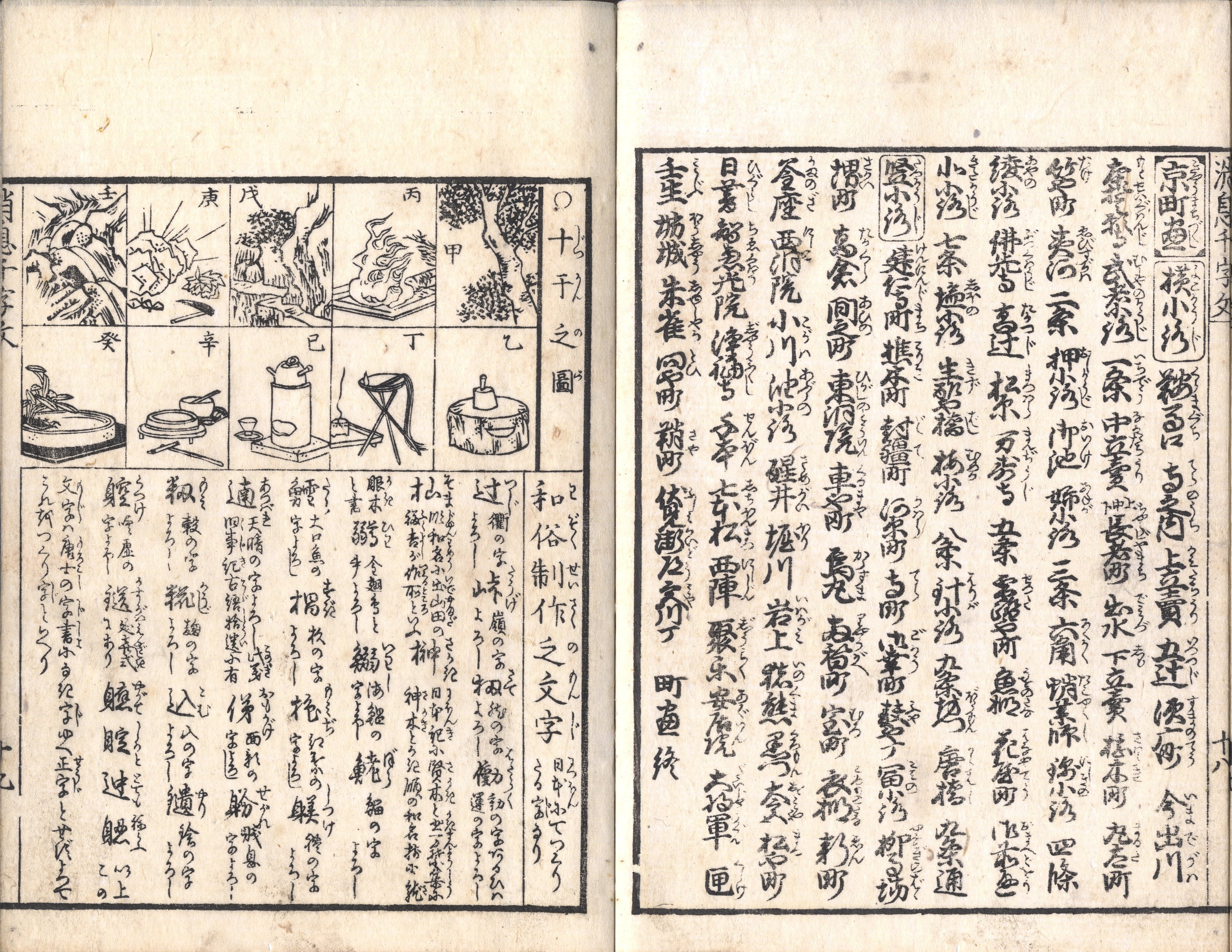 【備考】分類「往来物」。同板3種を収録。『消息千字文』は、安永7年刊『累語文章往来(消息往来)』とほぼ同文。手紙の文頭から文末までの順序に沿って消息用語や日常語を列記した往来。『千字文』と称するのは本書が入門書である所以を示そうとするものであって、他の『千字文』型教科書のように4字1句形式をとるものではない。「凡、手紙者、一筆、一翰、一札、啓上、啓達、任筆而、染筆致、令…」で始まる一文中に消息に多用する表現や語句を類語毎に往状・返状の順に列挙し、例えば「拝見」「拝誦」は上、「披閲」「披見」は中というように、適宜、上・中・下の記号を付けて身分上下の区別を示す。末尾で、四季異名や祝言状・弔状の作法に触れる。本文を大字・5行・付訓で記し、所々、左訓や略注も施すほか、本文中に消息や書道に関する記事・挿絵四葉を挟む。巻頭に「伏犧」「蘇武」「菅丞相」「弘法大師」にまつわる故事や「文具異名」、巻末に「百官名尽」「日本国尽」「京町尽」「十干之図」「和俗制作之文字」を掲げる。