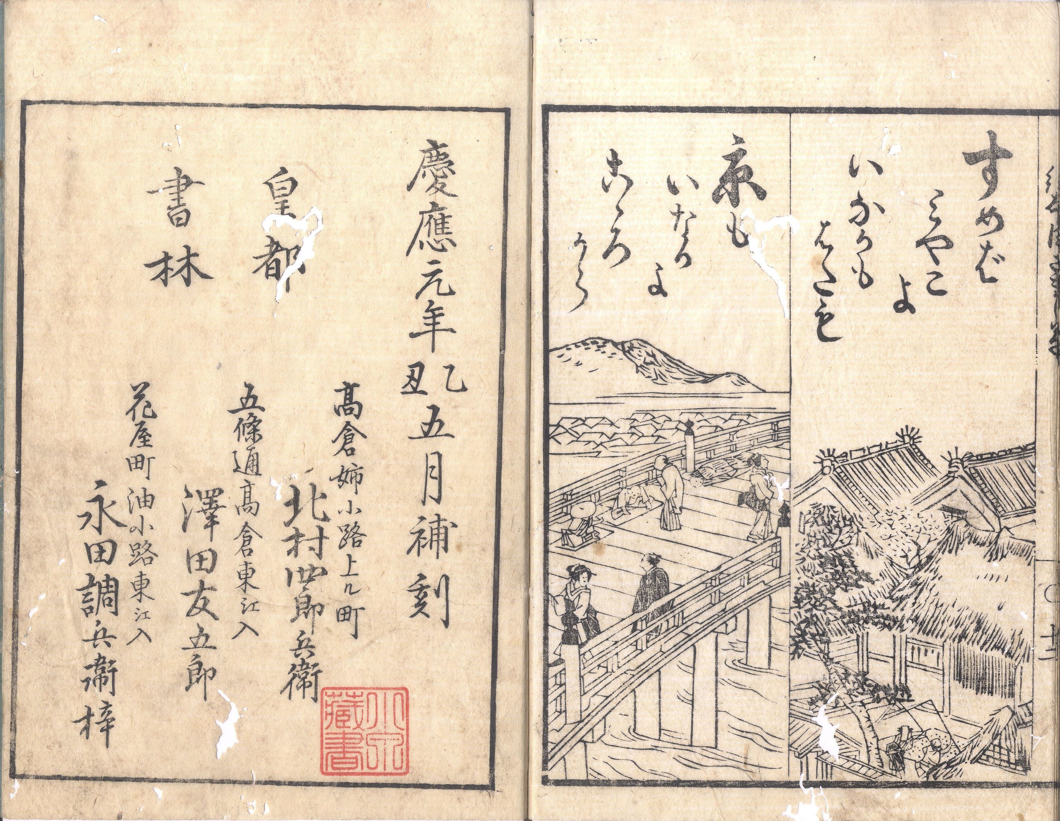 【年代等】天保7年春初刊。[京都]北村太助ほか板。慶応元年5月補刻。[京都]永田調兵衛板。明治9年5月再刊。[京都]永田調兵衛板。