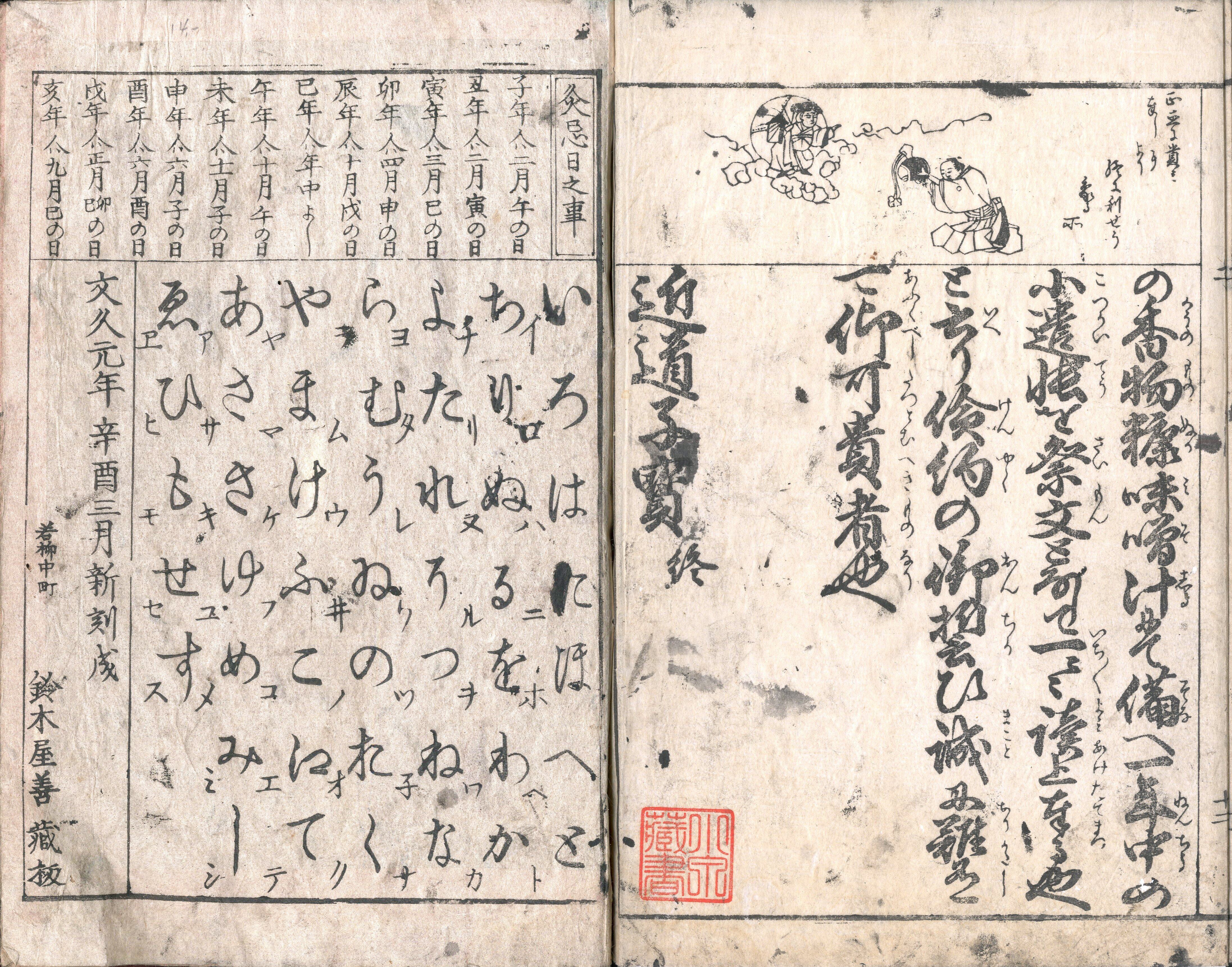 【年代等】嘉永5年板([仙台]菅原屋安兵衛ほか板)と文久元年板([陸前若柳]鈴木屋善蔵板)。