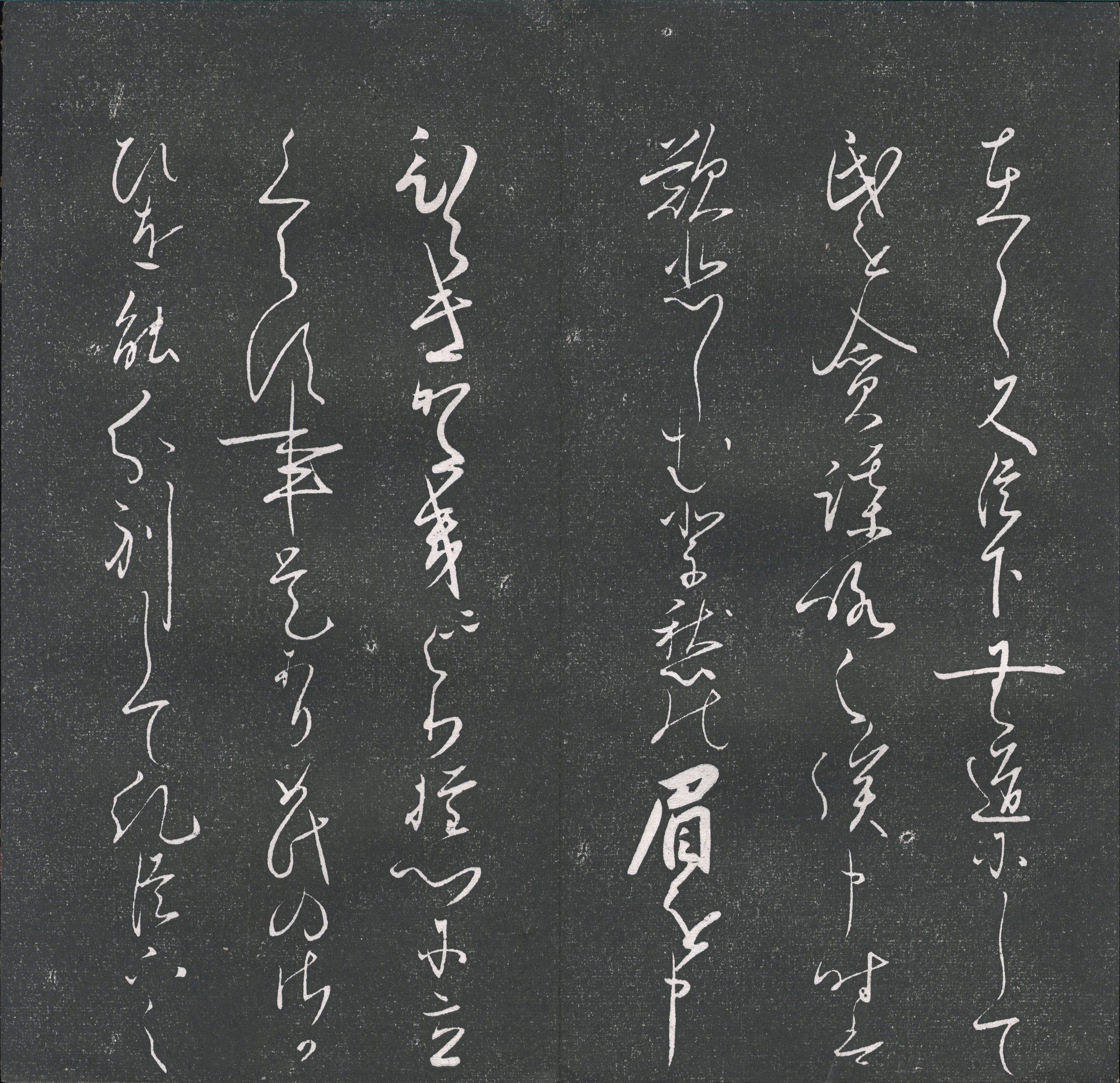 【備考】分類「往来物」。『今川状』を認めた特大の陰刻法帖。『今川状』は、今川貞世が弟(首題に「愚息」とあるが子息ではない)の仲秋にあてた教訓で、「一、不知文道而、武道終不得勝利事」で始まる23カ条と後文から成る往来。文武両道を強調する室町初期を代表する武家家訓とされる。以下、無益の殺生の戒め、罪人の公正な裁き、領民に対する非道と己の奢侈の戒め、先祖の建造物保持、忠孝怠慢の戒め、公平な賞罰、臣下を見て己を慎むこと、他人の不幸を己の利としないこと、分限相応、賢臣・侫人の見極め、非道の富裕と正しい零落、遊楽と家職など、武人として弁えるべき条々を列挙し、後文でも文武両道を繰り返し強調し、上下や友人の善悪、また己の心の善悪の見極めなど武士の心得を諭す。なお、底本巻末に、「今川帖、松花堂真蹟、千蔭」と記す。加藤千蔭が真蹟と認めたものである。