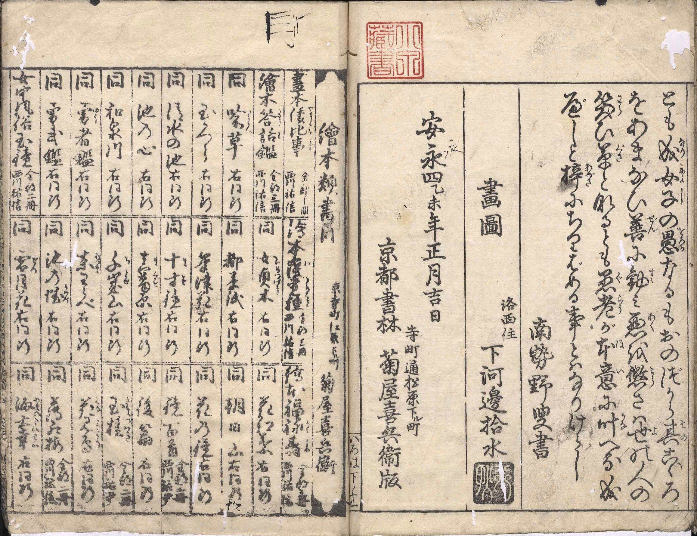【年代等】安永4年1月刊。[京都]菊屋喜兵衛板。