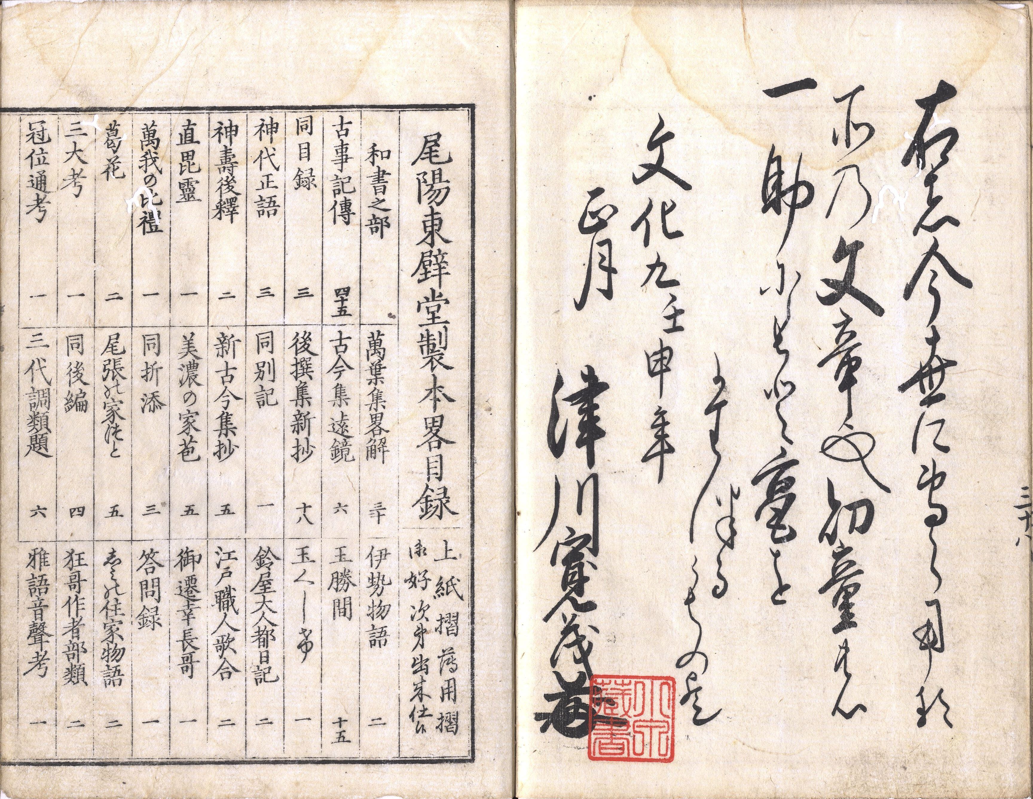 【年代等】文化9年1月書・刊。[名古屋]永楽屋東四郎板。