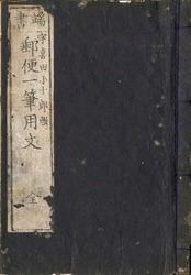 【備考】分類「往来物」。後印本も抄録した。『〈端書〉郵便一筆用文』は、3~4行程度の葉書用の例文を集めた用文章。「新年祝するの文」から「隔地にて代呂物買入案内の文」までの65通を収録する。季節に伴う例文は比較的少なく、「商用の文」(10通)、「金談の文」(8通)、「違約断の文」(3通)のように取引・売買や、急報・誘引・催促などの例文を種々載せる。いずれも漢語を多用した文章で、大字・5行・所々付訓(漢語に左訓)で記す。巻頭に「郵便はがき印紙大略の図」を掲げる(これを欠く本もある)。