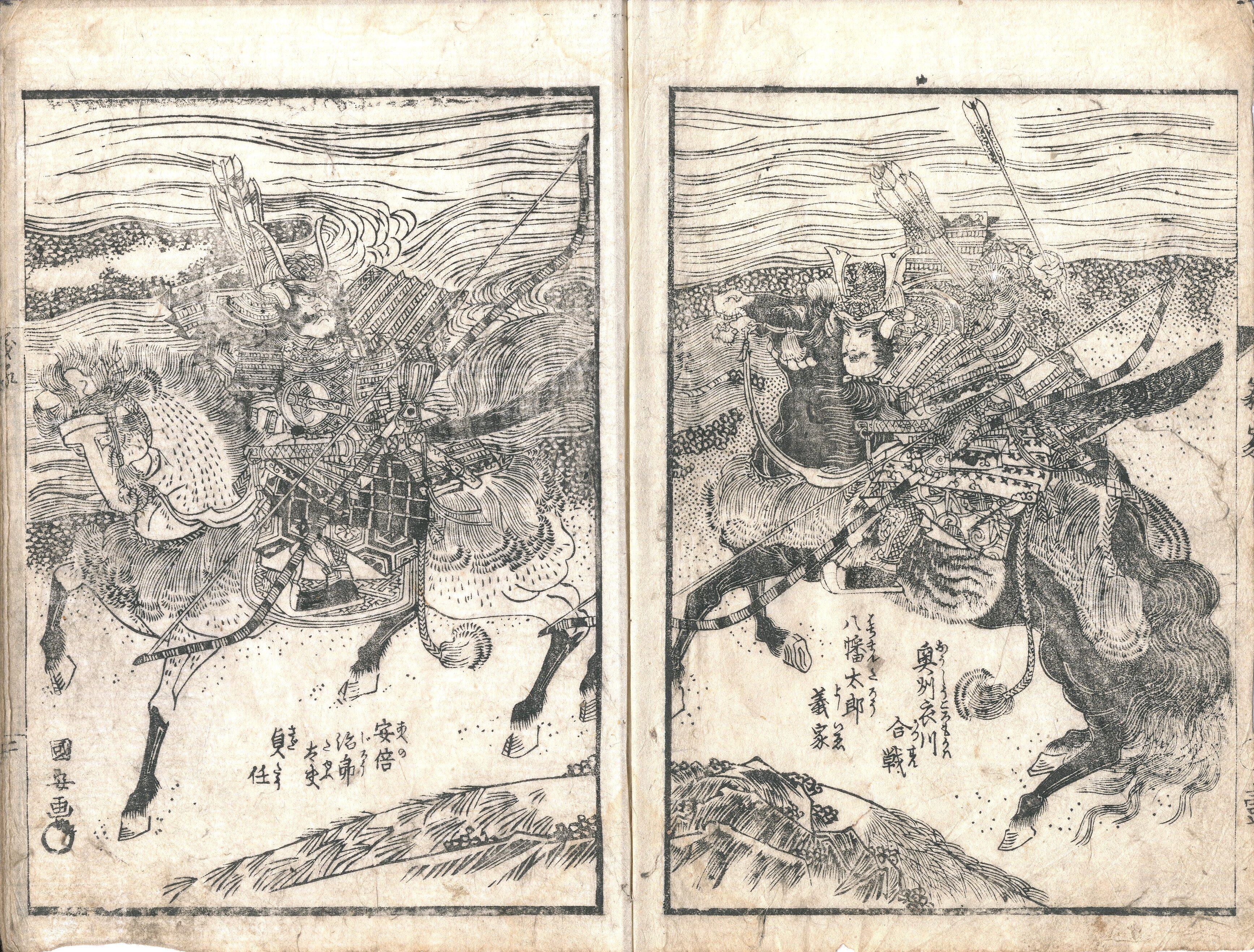 ★〈甲申新版〉英将義家往来[〈首書絵抄〉英将義家往来](2種) 【作者】十返舎一九作・序。歌川国安画