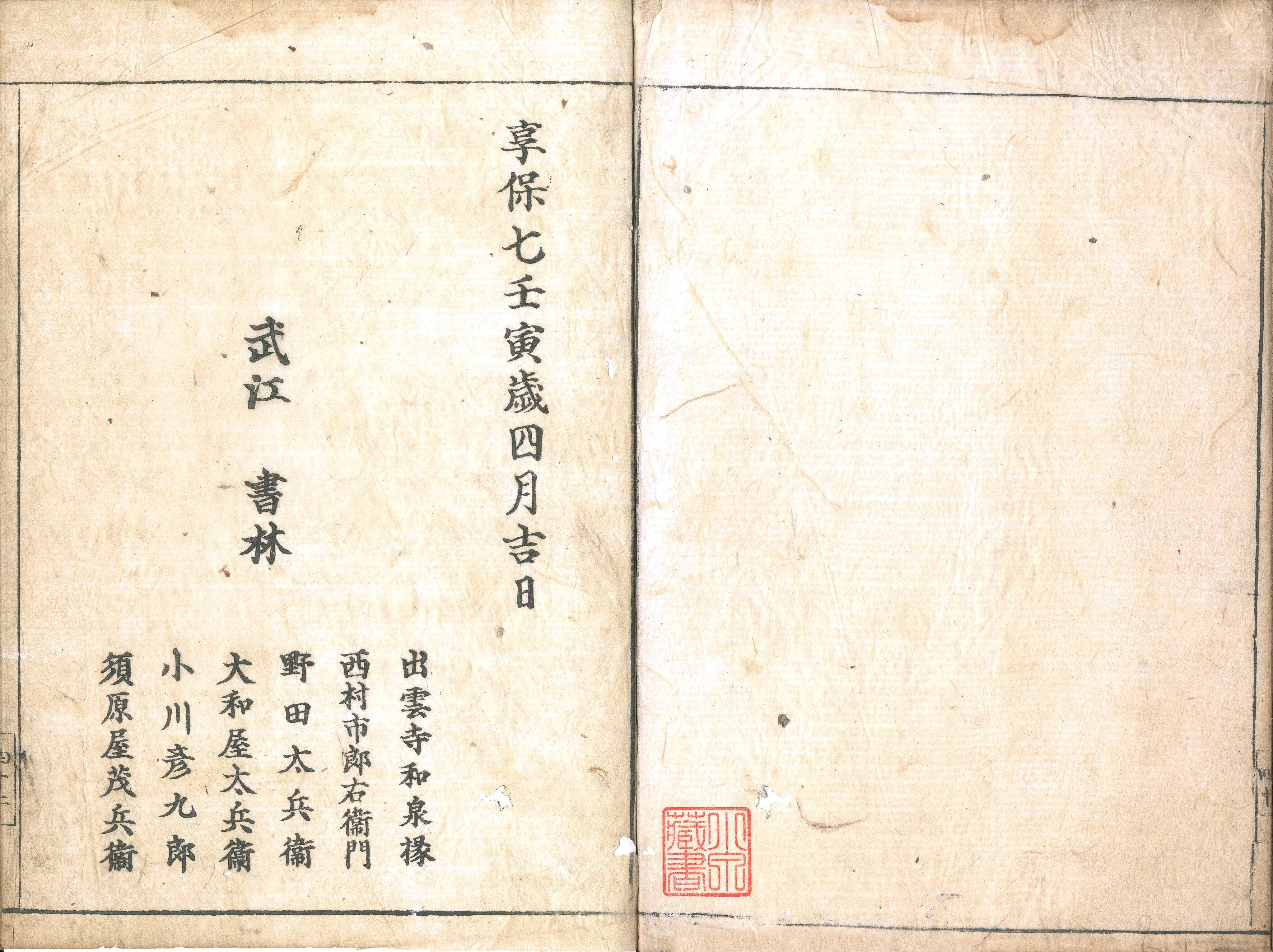 【年代等】享保7年2月自序。享保7年4月刊。[江戸]須原屋茂兵衛ほか板(初板本*京都板初板は享保7年8月刊)。