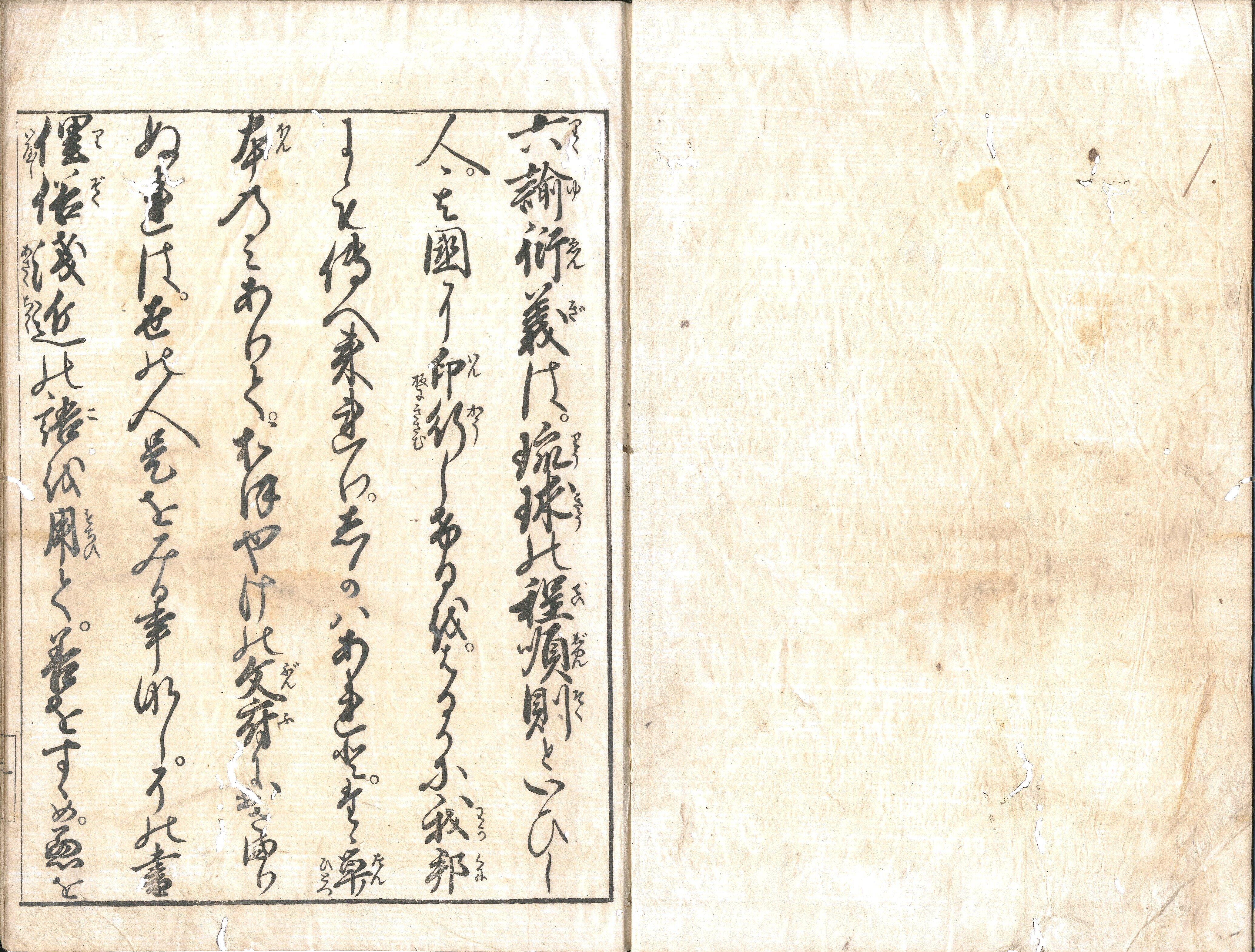【備考】分類「往来物」。後印本など2種を抄録した。『六諭衍義大意』は、享保6年刊『〈官刻〉六諭衍義』とともに将軍・吉宗の命によって庶民教化用に編まれた官刻の往来物。享保6年板は荻生徂徠が程順則本『六諭衍義』に訓点を施しただけのものであったが、さらに平易な仮名書きの教訓書として編まれたのが『六諭衍義大意』である。『六諭衍義』のうち当代の実情に合わない「律例(法度の箇条)」と「古人の事跡」を省いて、その「大略をとりて、和語をもて、是をやはらけ」たと編集の経緯を示す鳩巣の自序(享保7年2月)および自跋と「大意」本文のみで、『〈官刻〉六諭衍義』に収録された竺天植序、范鋐序、范鋐跋、程順則跋などは全て省かれた。本書全体が手本用に書かれており、まず、鳩巣の序文を行書・大字・6行・付訓(難字には左訓も施す)で記し、同様に「大意」本文は7行、各編末尾の詩文はやや大字の5行で記す。その版下書きは江戸の能書・石川勘助に命じられたが、本書が最初から往来物として編集されたことは、『兼山麗澤秘策』の「民衆などにて小児の手習仕候物に、幸ひ手本にも仕候様にとの思召にて御座候…」の記載からも明らかである。また、本書刊行直後に江戸町奉行・大岡忠相を通じて江戸の手習師匠へ褒賞品として下賜されるなど、幕府の強力な推進力により本書は庶民教育の基本図書として急速に全国に広がった。本書は最初に江戸と京都で「官刻」として出版されたが、寛政11年板以後は「賜版」となり、さらに天保15年には再板されている。このほか、文政13年・秋田藩板、天保4年・掛川藩板、天保5年・名古屋藩板、天保15年・古山代官板、弘化2年・河村奉行板、弘化4年・萩藩板、同・明倫堂板、嘉永6年・桑折代官板、同・岩村田藩板、刊年不明・福山藩板、同・伏見藩板、明治3年・柴山藩板などの各藩板や、安政4年・奥州白石の石津氏施板など篤志家による施板もあり、明治末年までに刊行された諸本は60種以上に及ぶ。