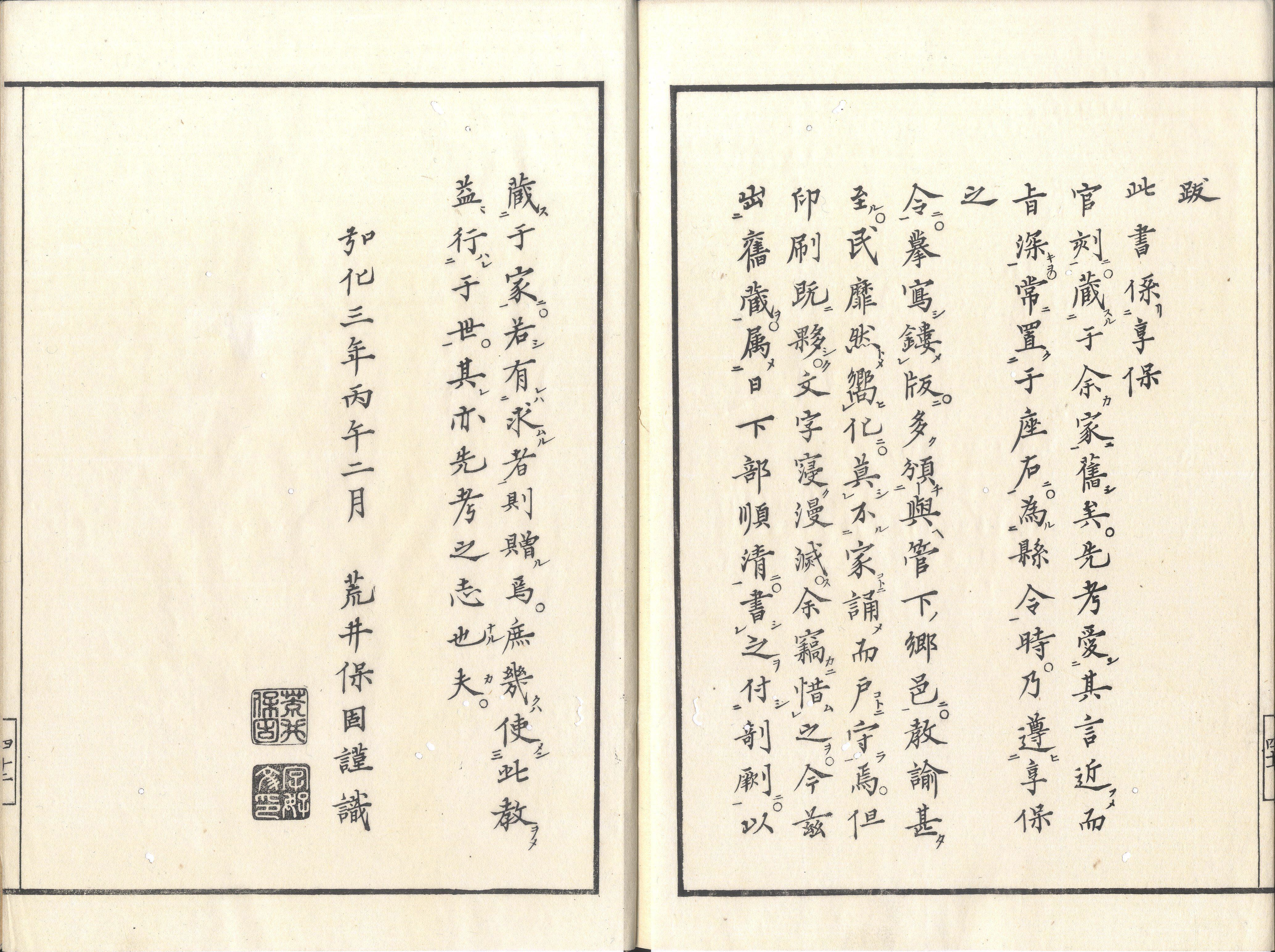 【年代等】弘化3年2月、荒井保固跋・刊。刊行者不明。