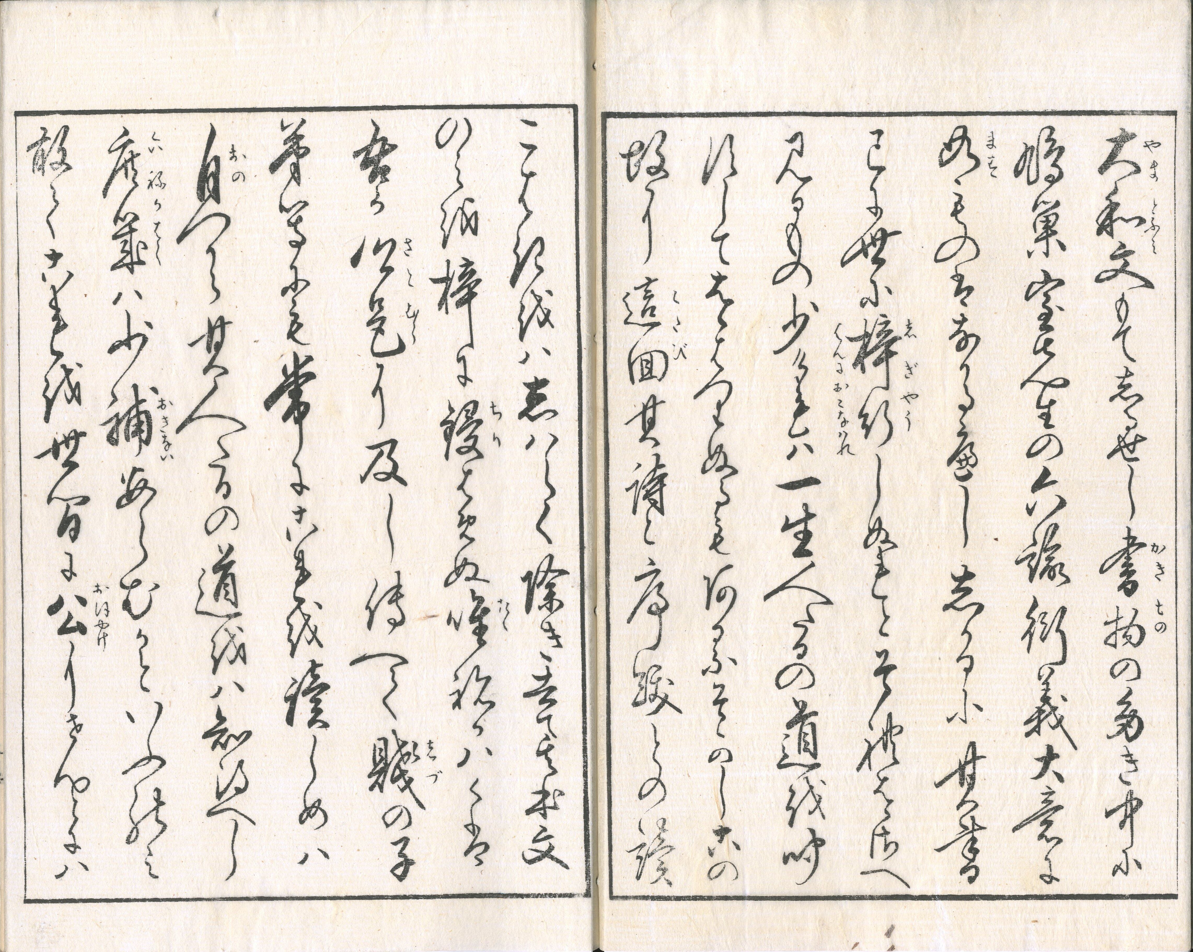 【備考】分類「往来物」。同板別本も抄録した。本書は、奥州白石の農夫、菊地某(石津屋重郎左衛門・静情堂)が自ら上梓した私家版・施印の『六諭衍義大意』。跋文によると、天保年間の初め頃に『六諭衍義大意』の上梓を志したという。その様子を「『六諭衍義』を梓にのぼせ、普く世に施して童子等に忠孝の道を教へんとする事既に七年におよびぬ」と記す。しかしながら、独力では広大な陸奥国に行き渡らせることは困難なので、まずは刈田(カッタ)郡(現在の宮城県白石市・蔵王町・七ヶ宿町)に各村10冊ずつ配布し、その他の郡にも速やかに送る旨を伝えたが、もし私の志を助けようという人がいたらぜひ協力して欲しいと訴えている。『六諭衍義大意』は、享保6年刊『〈官刻〉六諭衍義』とともに将軍・吉宗の命によって庶民教化用に編まれた官刻の往来物。享保6年板は荻生徂徠が程順則本『六諭衍義』(『六諭』は、明の太祖・洪武帝が洪武31年(1398)に発布した『教民傍文』41カ条中の「自治章程」の1条で、「孝順父母」「尊敬長上」「和睦郷里」「教訓子弟」「各安生理」「母作非為」の6項に及ぶ庶民の生活心得)に訓点を施しただけのものであったが、さらに平易な仮名書きの教訓書として編まれたのが『六諭衍義大意』である。『六諭衍義』のうち当代の実情に合わない「律例(法度の箇条)」と「古人の事跡」を省いて、その「大略をとりて、和語をもて、是をやはらけ」たと編集の経緯を示す鳩巣の自序(享保7年2月)および自跋と「大意」本文のみで、『〈官刻〉六諭衍義』に収録された竺天植序、范鋐序、范鋐跋、程順則跋などは全て省かれた。