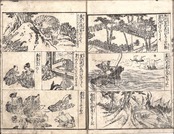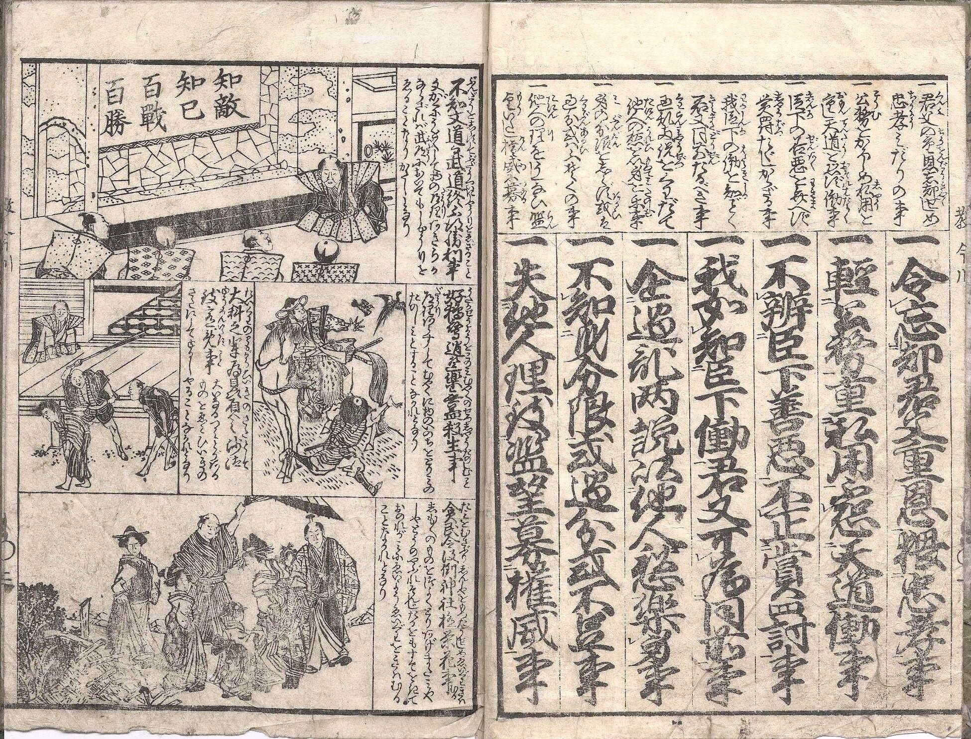 【備考】分類「往来物」。『〈絵図注入〉教今川〈并〉腰越状』は、『今川状』と『腰越状』の本文を大字・7行・無訓で記し、その読法を頭書に掲げて、関連の挿絵と略注を随所に施した往来物。巻末に「三体いろは」「十幹十二支」を掲げる。また、同体裁に編んだ他の古状と一まとめにした『〈絵図注入〉教古状揃大成』が刊行された。なお、この『教○○』と題した一連の往来物は『教庭訓』を嚆矢とし、さらに『教実語教』『教商売往来』等の亜流が数種刊行された。