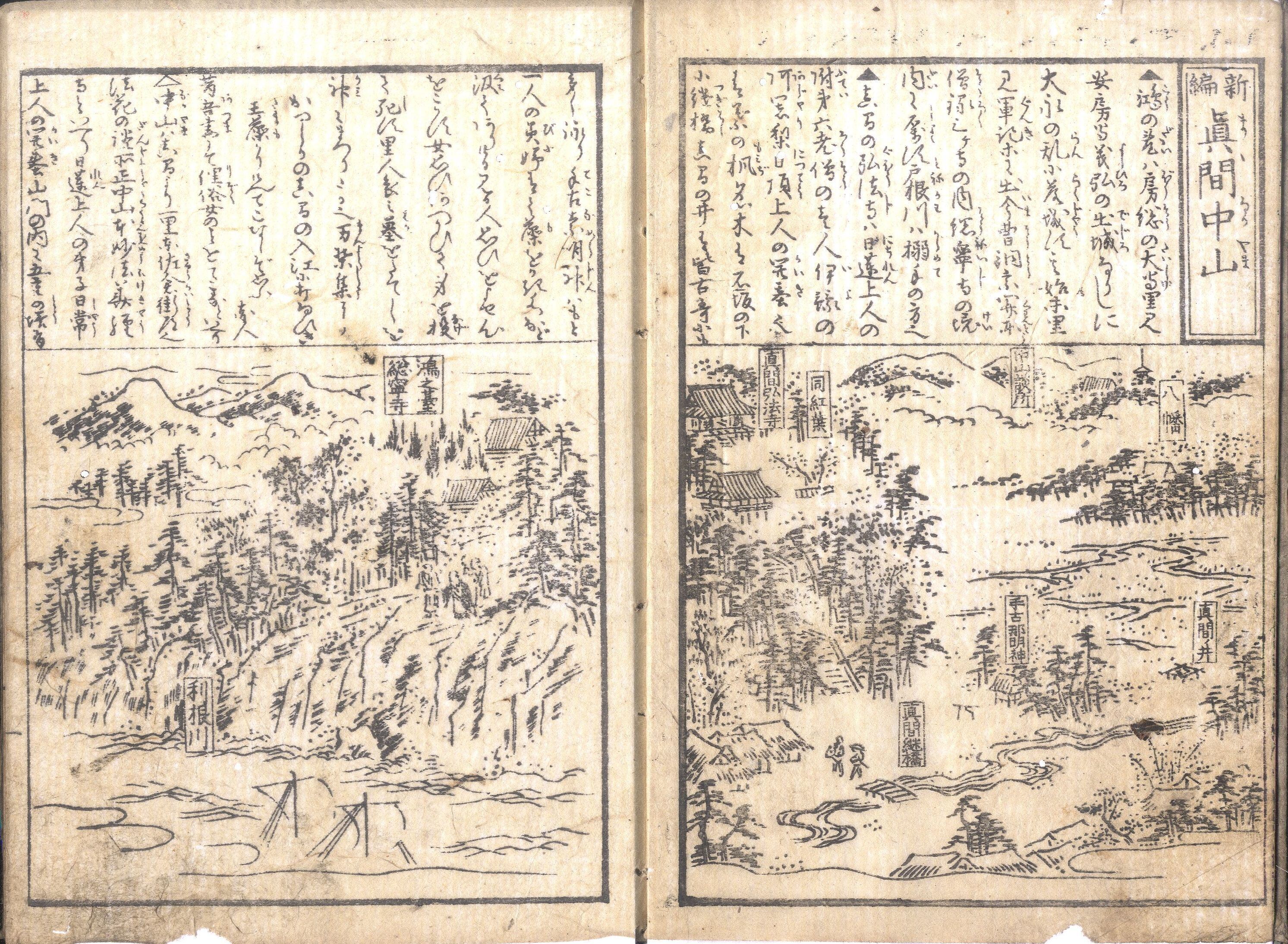 【備考】分類「往来物」。異板や文政再板本など3種を全冊収録した。江戸・日本橋より成田に至る沿道の宿駅・名所旧跡・神社仏閣および成田山新勝寺の景趣・縁起等を記した往来。「下総国埴生郡成田山参詣之道筋、任御尋、順路荒増認進候…」で始まる全文1通の手紙文で綴る。各地の情景や風物を豊富に織り込みながら、日本橋など東都の繁栄、利根川・真間中山・印旛浦の眺望、成田山の景観などを紹介する。本文を大字・5行・付訓で記す。見返に「不動尊略伝記」、頭書に「楠正成金剛山居間之壁書」を掲げる。なお、文政4年求板本(山本平吉板)では、裏表紙見返に「成田山参詣順路図」を掲げる。