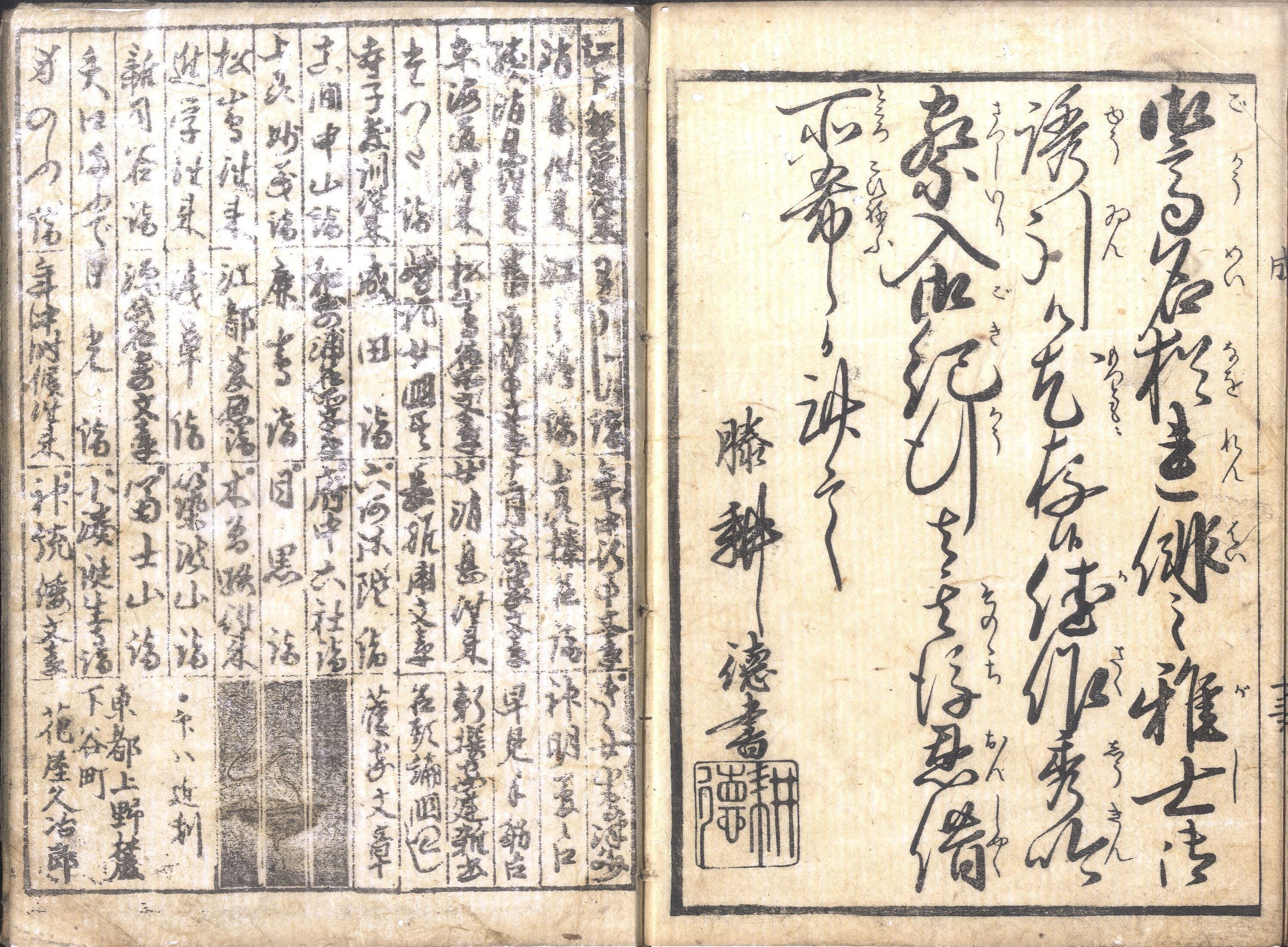 【年代等】享和元年頃初刊([江戸]花屋久治郎板)。文政4年8月求板([江戸]山本平吉板)。