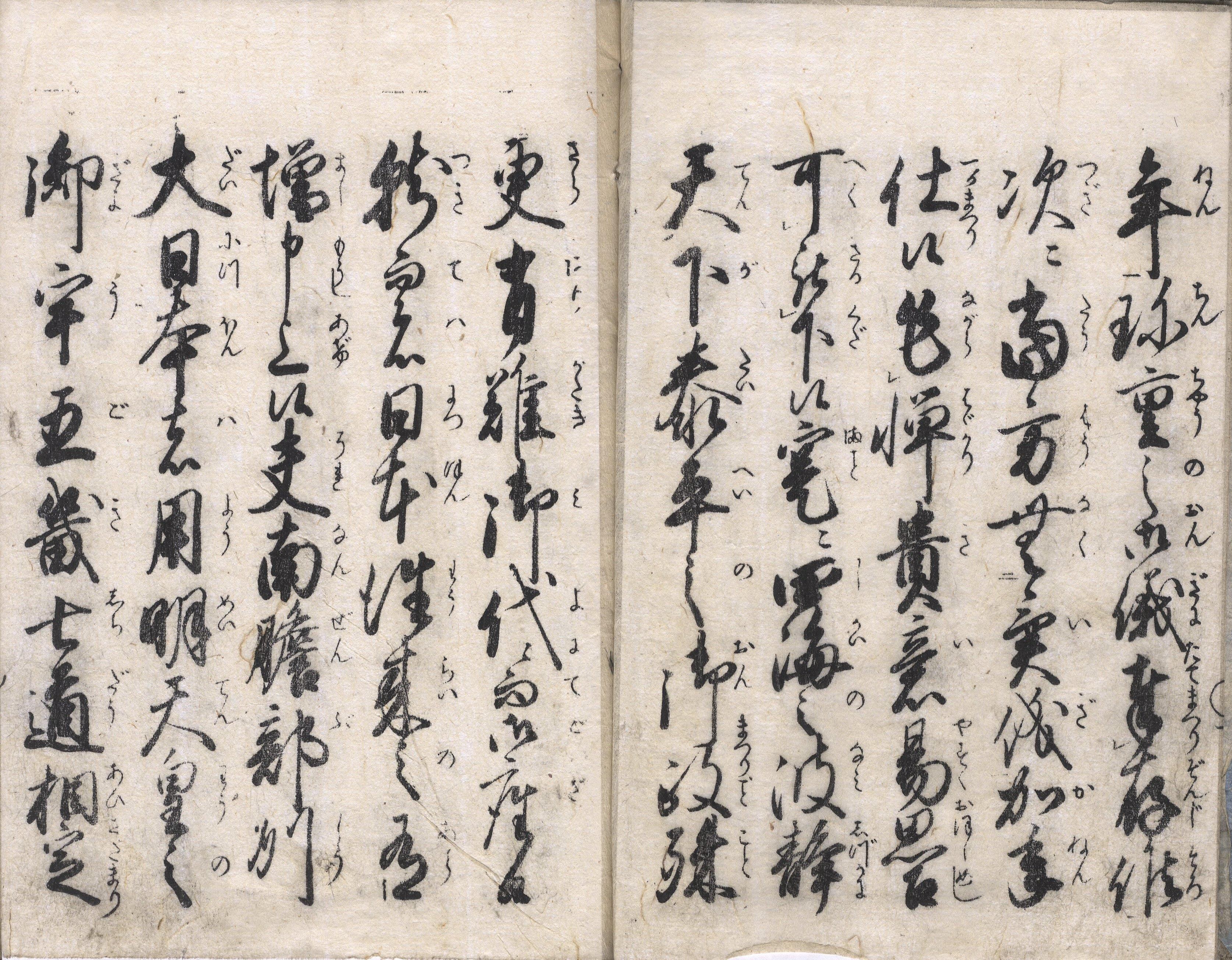【備考】分類「往来物」。貞享5年刊『日本往来』の増補版。貞享板本文が8通の書簡文から成るのに対し、本書は「新年之御慶賀不可有窮期御座、目出度申納候…」で始まる1月状から12月状までの12通で綴る。