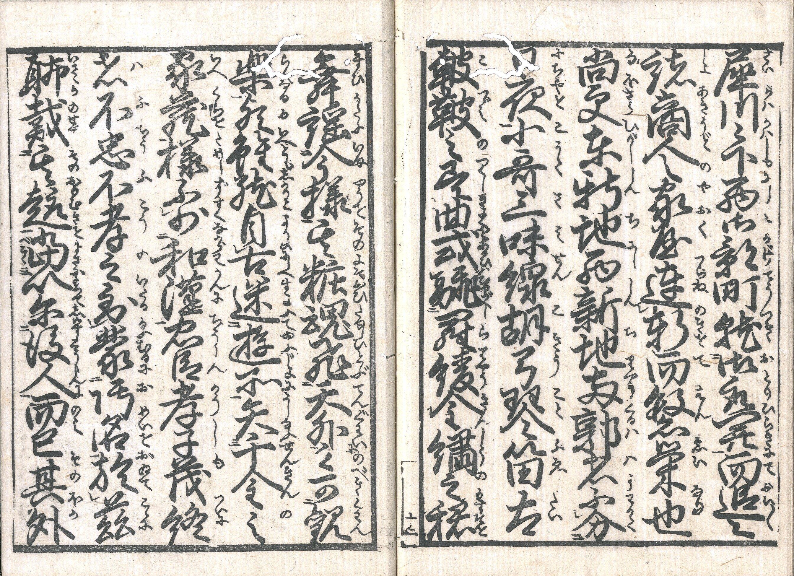 【備考】分類「往来物」。金沢の神社仏閣・名所旧跡や名物、また繁栄の様子などを記した往来。「抑、御府内繁昌之地者、雖無際限、先以鶴間之秋月者、移于田毎而、其景色難言尽、有心於詩歌・連俳人者、寄集此処而不覚夜更」と起筆して、それぞれの風趣や故事来歴にも触れながら綴る。末尾では、加賀藩14代藩主、前田慶寧(ヨシヤス)が福沢諭吉の『西洋事情』に触発されて行った金沢城東卯辰山(ウタツヤマ、金沢城の卯辰の方角に位置する)開発事業(養生所・撫育所などの医療福祉施設や娯楽施設のほか各種工場・商業施設等)の一環で行った慶応3年9月23日の御遷宮(竹沢御殿から卯辰山天満宮への祭神移転)の道中の警護や賑わいの様子や、「越後表出張忠奮戦死之者」、すなわち、北越戦争(戊辰戦争の一つ、慶応4年(1868)閏4~8月に越後中・北部で行われた新政府軍と奥羽越列藩同盟軍との戦争)での戦死者追悼(*前田慶寧は同年 明治元年10月に卯辰山に招魂祠を造営)、東西新地歓楽街での遊芸に触れた後で、「…其外数多雖有之、粗任思出、馳禿筆者也。是併、大海之一滴、九牛一毛也。誠以、御国長久、千秋万歳、万々歳、目出度穴賢」と結ぶ。本文を大字・5行・付訓で記す。