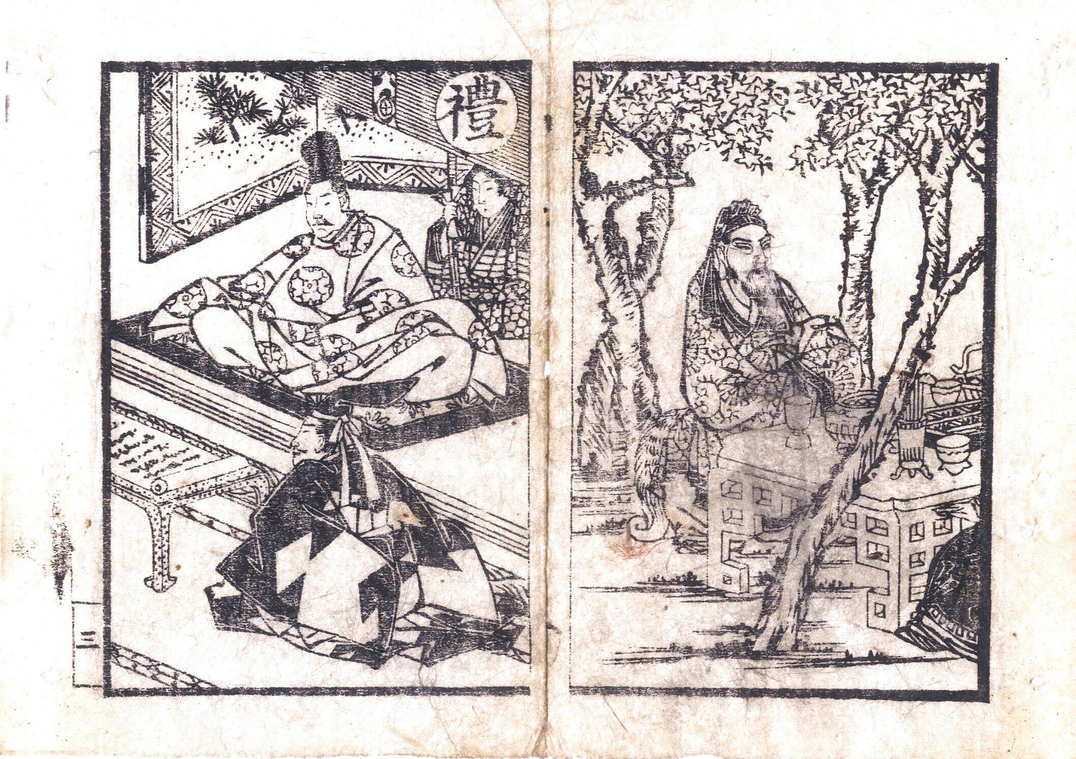 【備考】分類「往来物」。『大学(大学章句序・大学朱熹章句)』を主内容とする往来。本文をやや小字・5行・付訓で記す。前付に「五常」「月異名」、頭書に石門心学流の「いろはうた」「七ッ以呂波」「書初の詩歌」「七夕の詩歌」、巻末に「細川玄旨教誡之歌」を収録する。
