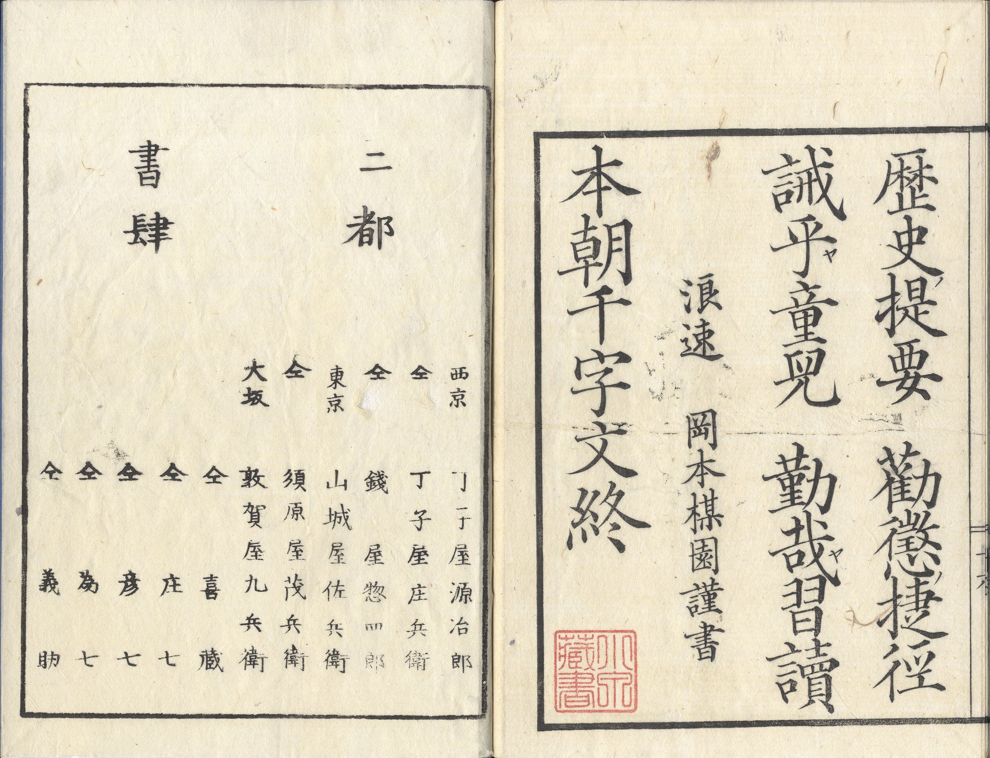 05歴ホンチョウセンジモン(明治初年・岡本楳園書・2種)【往来物】25 SE00653