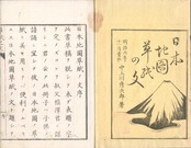 【備考】分類「往来物」。日本の国土と五畿八道別に諸国の地理的特徴を略述した和装本教科書。「円き地球の広大は、廻はれば一万三百里、軸を貫く直径は、凡三千三百里、果しも知らぬ空中に、浮びて落ちぬ妙工は、人手にあらず天の所為…」と起筆する七五調の文章で、まず地球と五大陸のあらましを述べ、続いて「日本国」「畿内」「東海道」「東山道」「北海道」「北陸道」「山陰道」「山陽道」「南海道」「西海道」の順に記す。本書書名については序文にある通り、著者の叔父である福沢諭吉に相談したところ、「此冊子ハ子供ノ諳誦ニ宜シク、彼ノ日本地図ノ草紙ニ并セ用ヒナバ便利ナルベキユエ、『日本地図草紙ノ文』と題シテハ如何トノ差図ニ従」って命名したもの。巻頭に「日本之図(北海道の地方区分を示す)」、巻末に「東海道・東山道・北陸道之図」および「畿内・山陰道・山陽道・南海道・西海道之図」の色刷り・折り込み地図3葉を付す。