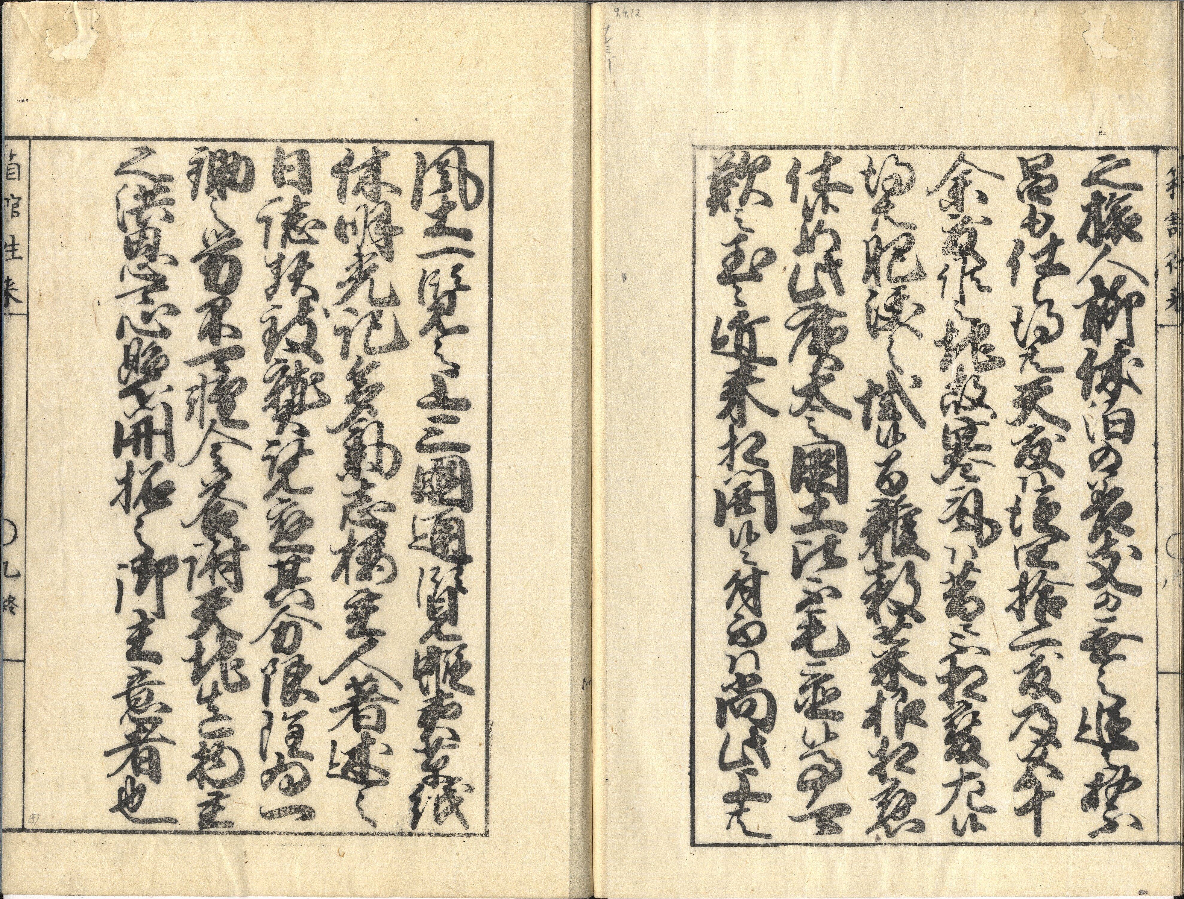 【備考】分類「往来物」。箱館(函館)を中心とする北海道・北方領土開発の経緯、領主・松前氏の支配と箱館の盛況、蝦夷各地の物産、同地の気候や開拓の気運などを記した往来。「抑、蝦夷与申地名、有数種。内郡蝦夷与申は、従陸奥胆沢和賀郡辺以奥号之由…」と筆を起こし、まず「蝦夷」の名称や函館が「渡嶋(おしま)蝦夷」と称すること、斉明天皇の時代から近年までの蝦夷地開発、松前・江刺・箱館等の沿革、箱館の諸役人・諸職人・諸商人などを略述した後で、道内の物産を詳しく紹介する。また、蝦夷地の通行改めや異民族との交易にも触れる。本文を大字・6行・無訓で記す。また、見返にアイヌ風俗図を掲げる。