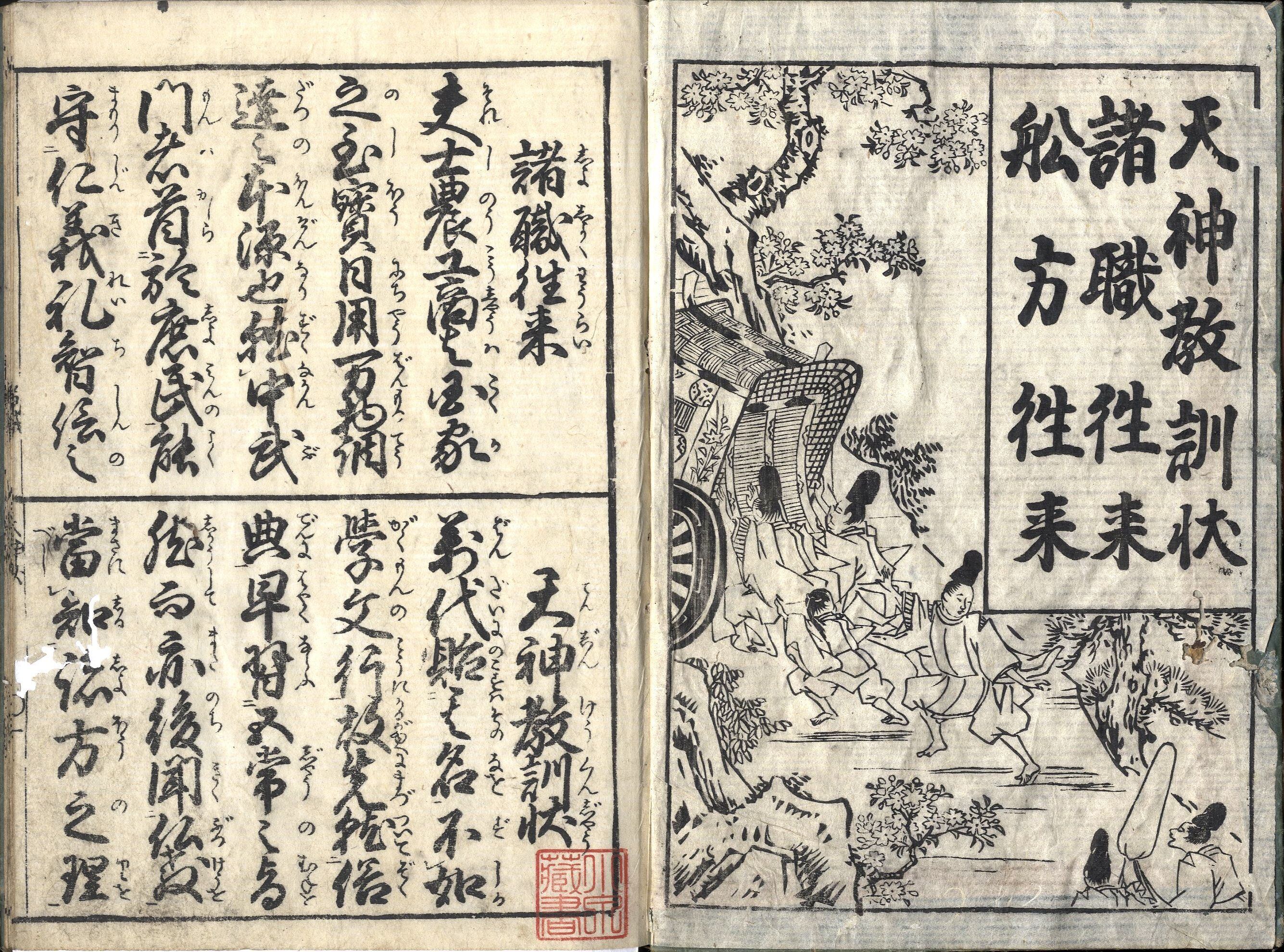 【備考】分類「往来物」。「諸職往来」「天神教訓状」「諸職往来」を収録。後半に江戸後期後印本の全てと、文政9年冬、土佐屋喜兵衛求板本の一部を掲載した。