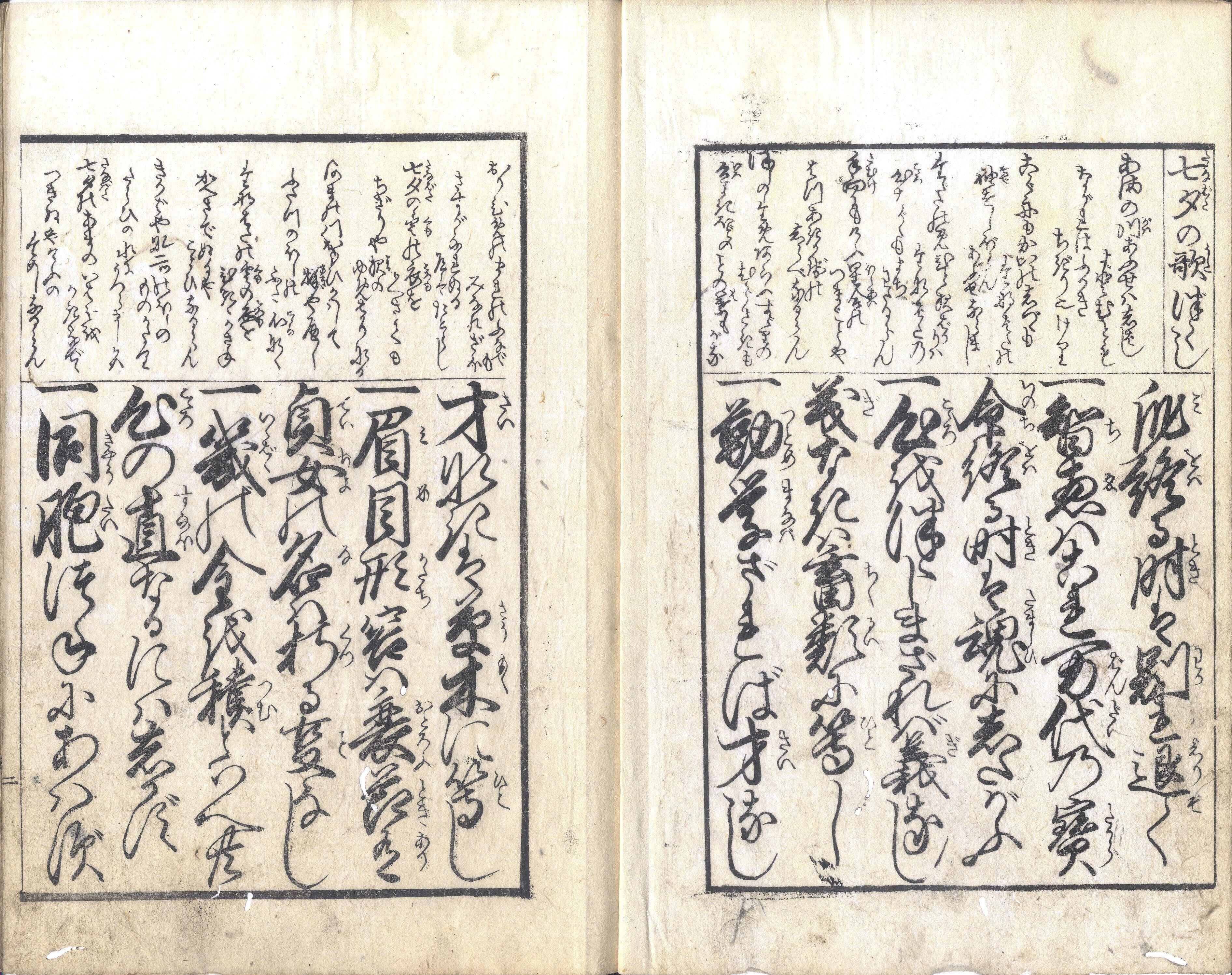 【備考】分類「往来物」。同板別本も抄録した。元禄8年初板本は2巻2冊で、上巻「女実語教」は「一、品勝たるが故に貴からず。心正しきを以てよしとす」で始まる47カ条、下巻「女童子教」は「一、夫、上つかたの御前には恭有て、立事をせざれ」から始まる128カ条の条々(合計175カ条)で、容姿よりも女性の心持ちの大切さを諭し、そのほか忠孝・礼節など諸般の教訓を説く。後に、両者が合体し、『女実語教』と称して普及した。