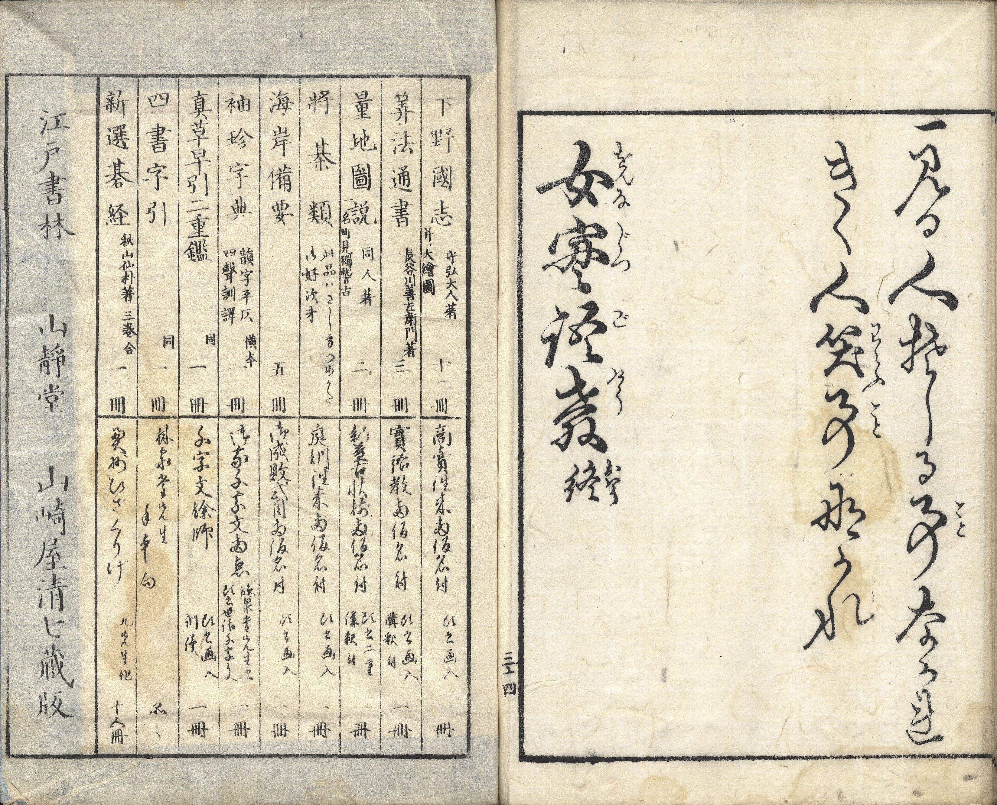【年代等】天保15年3月刊([江戸]山城屋新兵衛ほか板)。江戸後期再刊([江戸]山崎屋清七板)。明治初年再刊([東京]山崎屋清七板)。