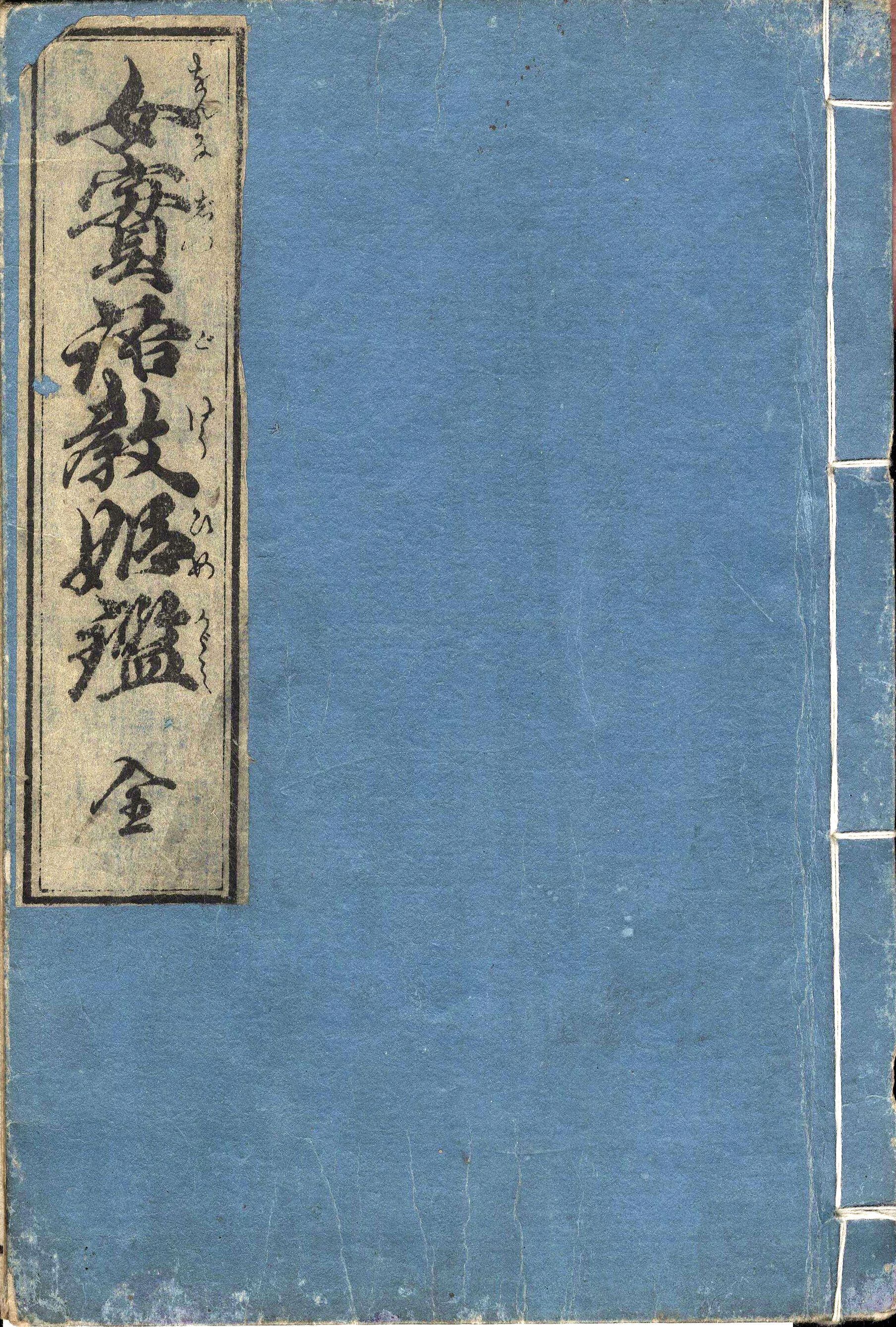 【備考】分類「往来物」。居初津奈作、元禄8年刊『女実語教・女童子教』の本文を大字・5行・付訓で記したもの。『女実語教』は「一、品勝たるが故に貴からず。心正しきを以てよしとす」で始まる47カ条、『女童子教』は「一、夫、上つかたの御前には恭有て、立事をせざれ」から始まる128カ条の条々(合計175カ条)で、容姿よりも女性の心持ちの大切さを諭し、そのほか忠孝・礼節など諸般の教訓を説く。初板本は2巻だったが、後に、175カ条の全てを「女実語教」と呼ぶようになった。なお、底本は、巻頭に平安時代の貴族図2葉を載せるが、早印本は藍刷りであったが、後に墨刷りとなった。