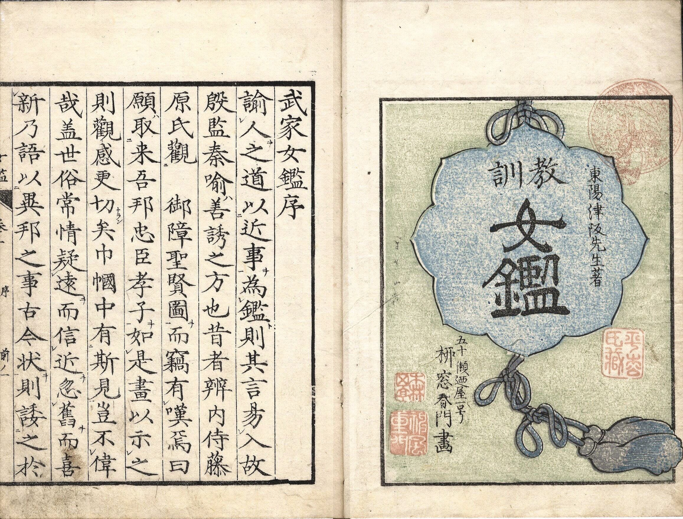 ★武家女鑑[武家女可々美・〈教訓〉女鑑](天保11年) 【作者】津阪東陽(津坂孝綽・君裕・常之進・稽古精舎)作・序。山崎義故(孔雀老人・松居・恕道)跋。柳窓春門(五十瀬廼屋)画