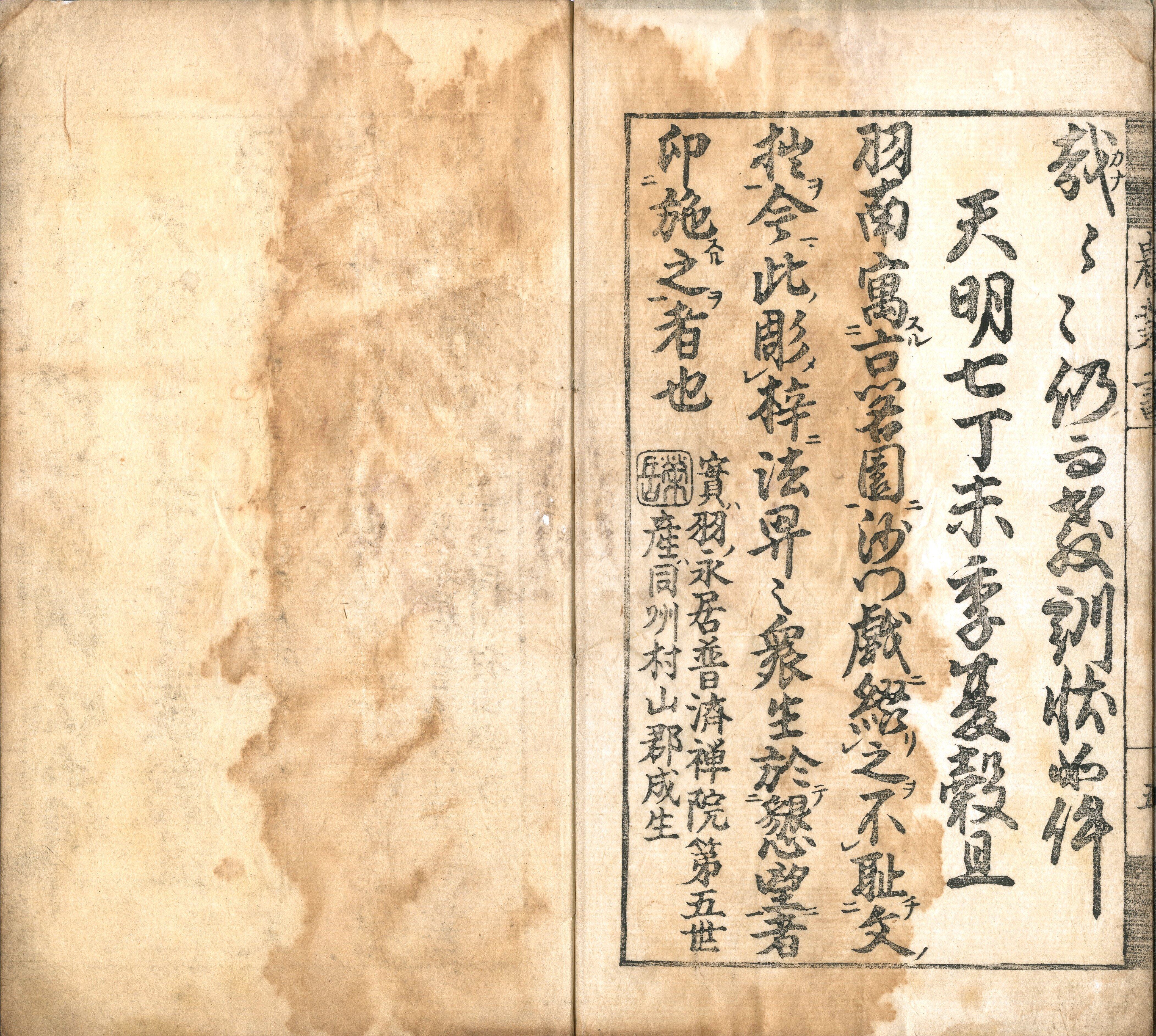 【年代等】天明7年6月作・刊。[米沢]普済禅院蔵板(施印)。