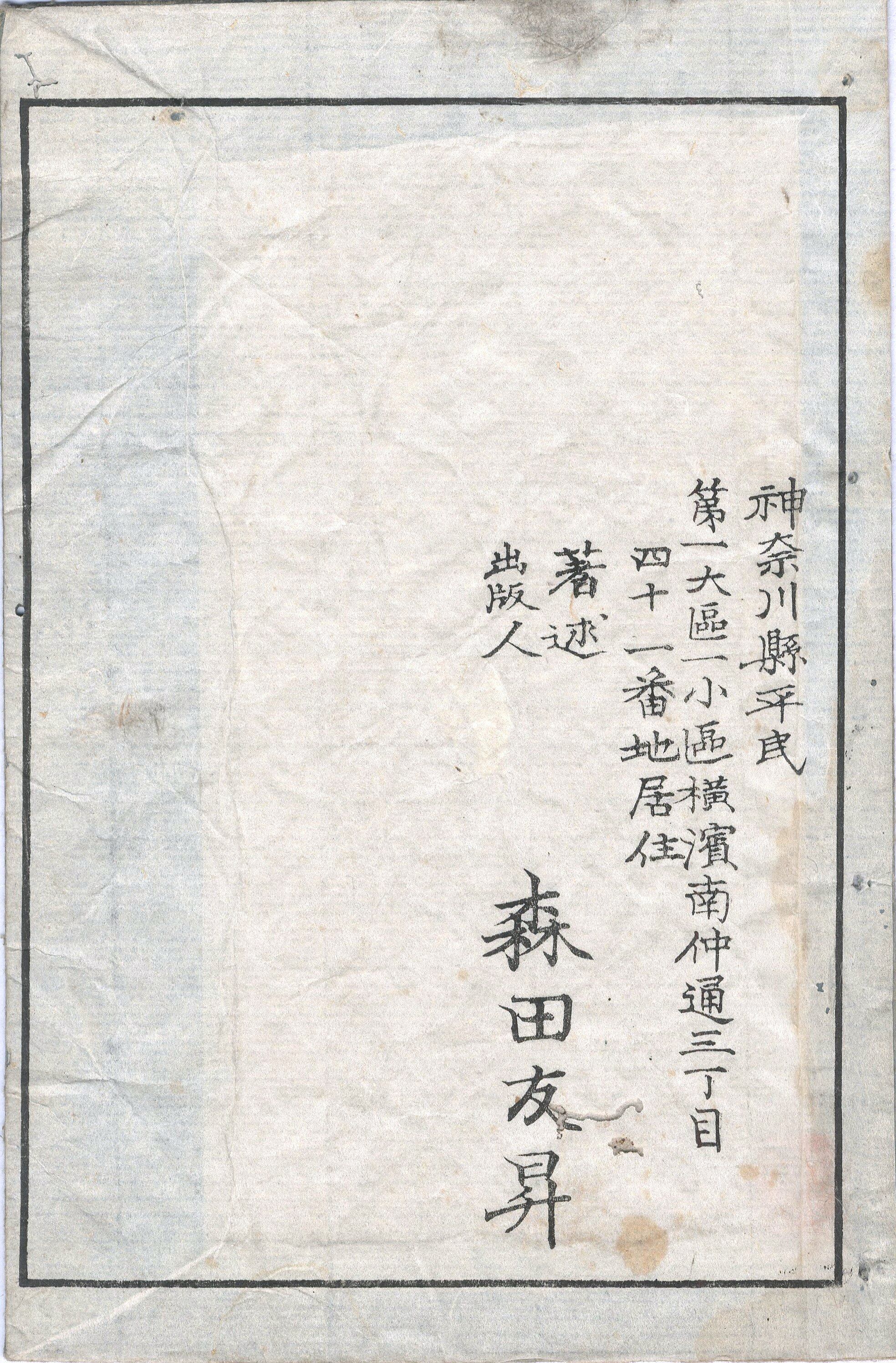 【年代等】明治8年11月、加藤祐一序。明治8年12月、平家真宝序。明治8年12月刊。[横浜]森田友昇蔵板。
