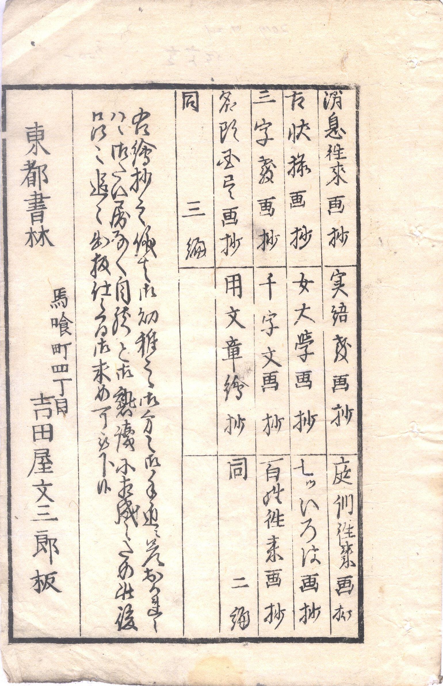 【年代等】慶応2年以前刊。[江戸]吉田屋文三郎(文江堂)板。