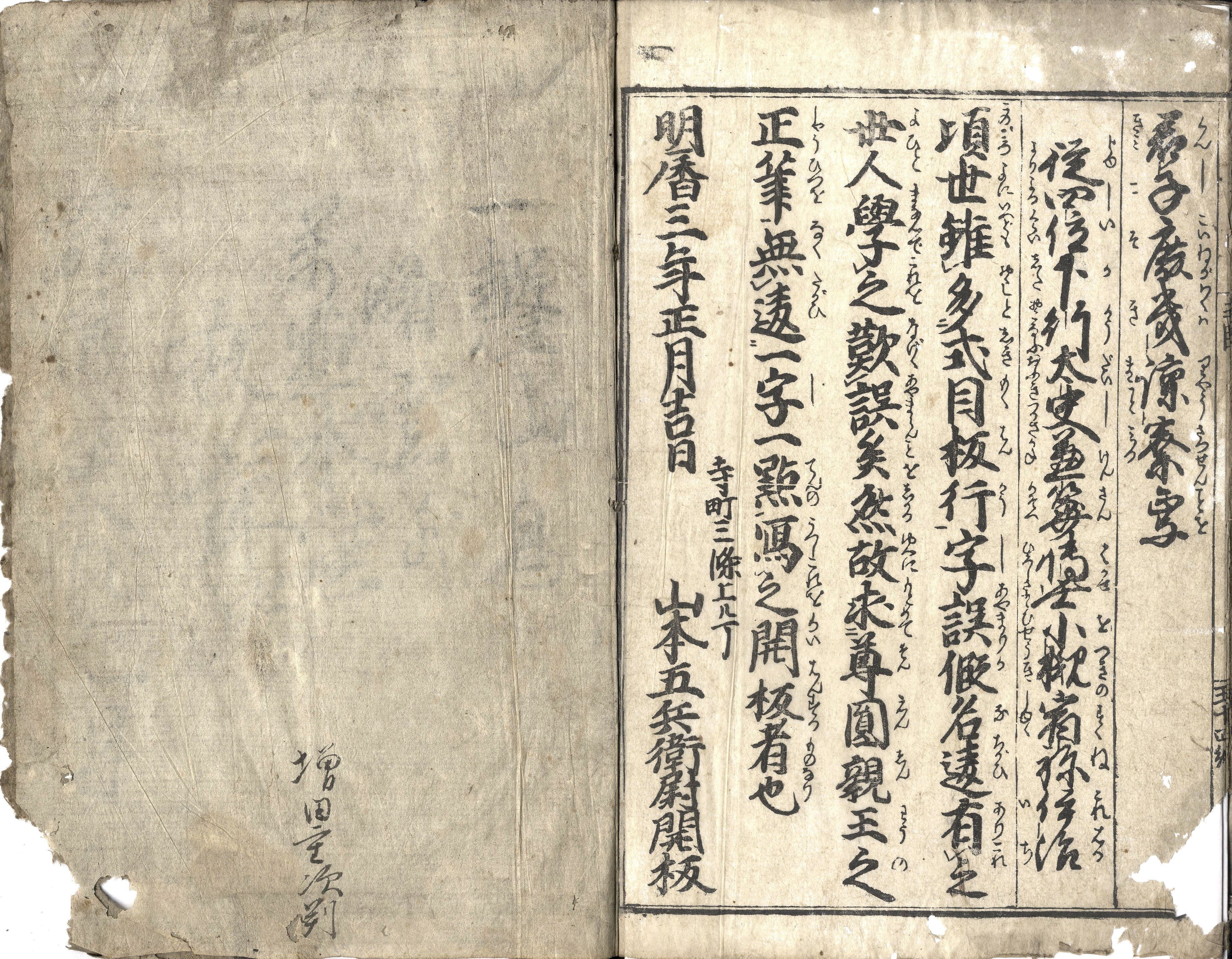 【年代等】明暦3年1月刊。[京都]山本五兵衛板。