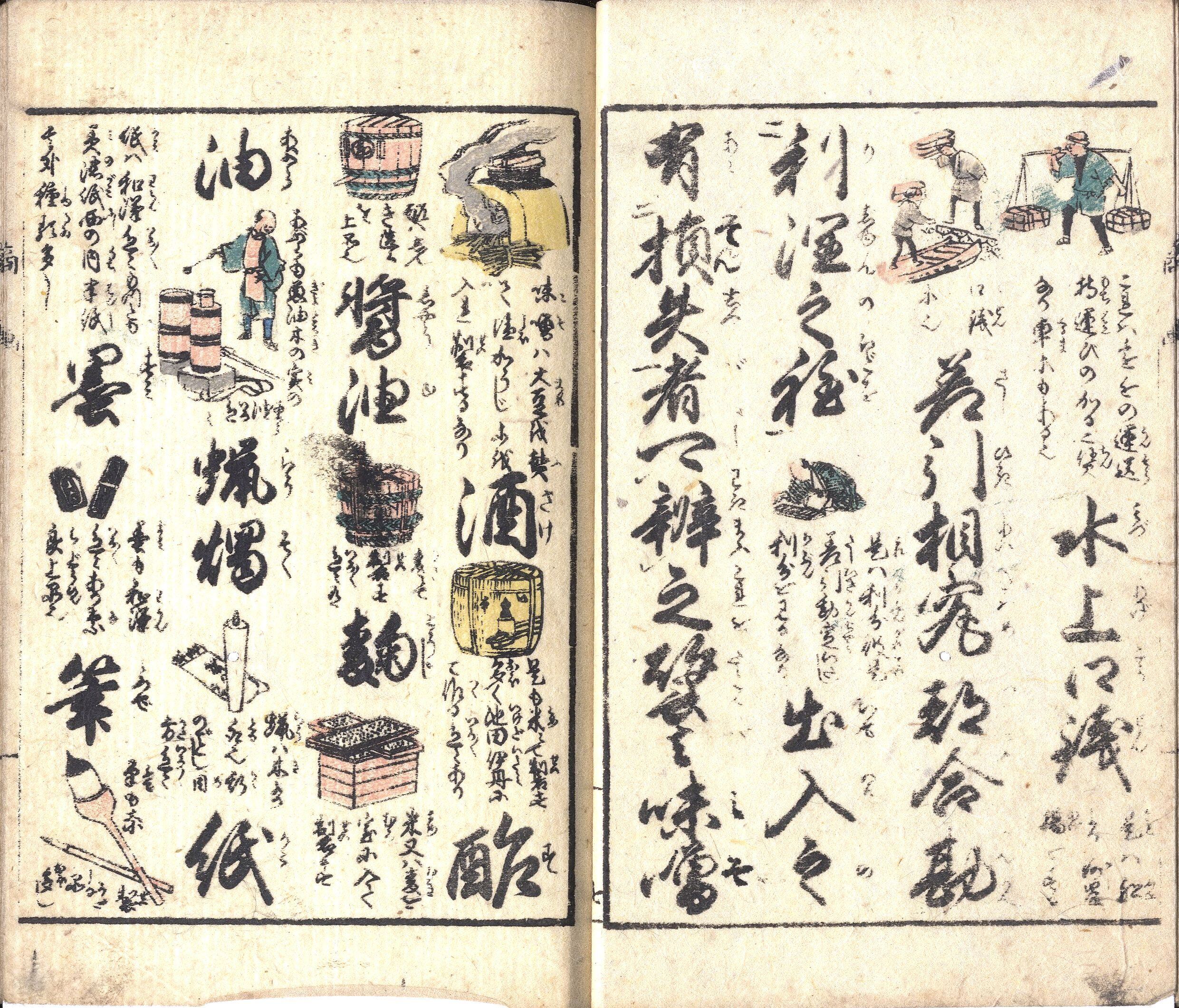 商売往来絵字引(初・2編) 【作者】柳河春三(又玄斎南可・楊江・暾・春蔭・喫霞楼仙客)作・序。長谷川実信(信天翁)・歌川広重二世画