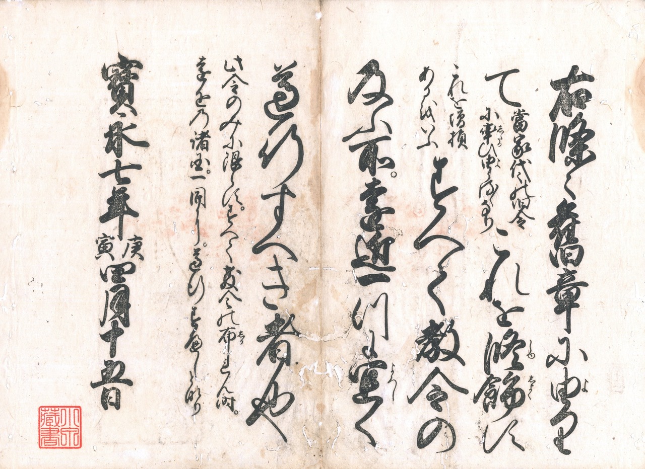 【年代等】宝永7年4月制定(武家諸法度)。正徳2年7月初刊。[江戸]唐本屋清兵衛(玉芝堂)板。