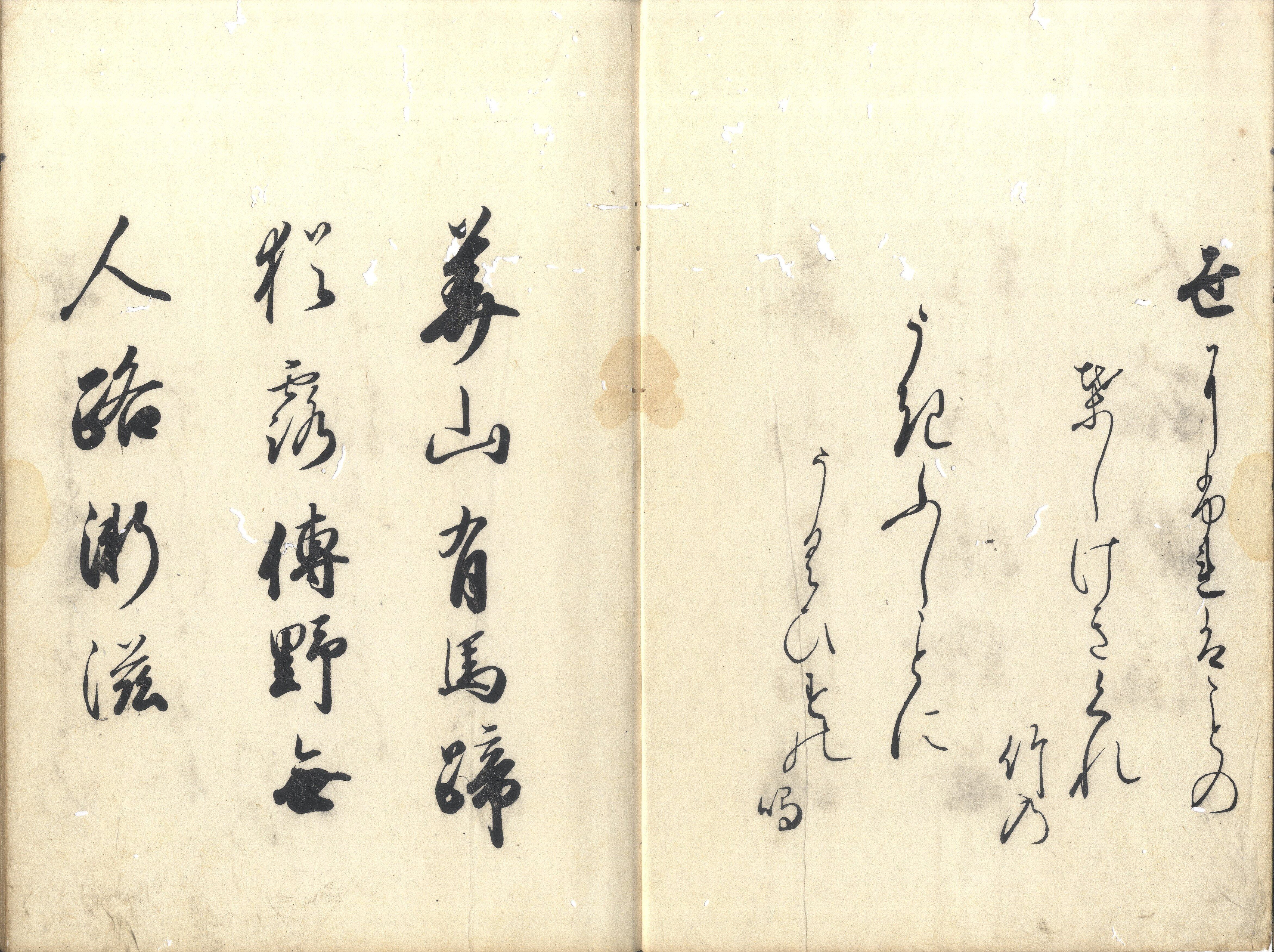 【備考】分類「往来物」。詩歌を集めた手本。冒頭に『和漢朗詠集』から抄録した「煙葉朦籠侵夜色、風枝蕭颯欲秋声」を掲げ、以下、77編の詩歌を大字・3-4行・無訓で綴る。明和8年5月の識語に「依大路氏所望馳禿筆。尤不可有外見者也」とあることからも、大路板が初刊であり、かつ本書が永庵74歳の書と判明する。