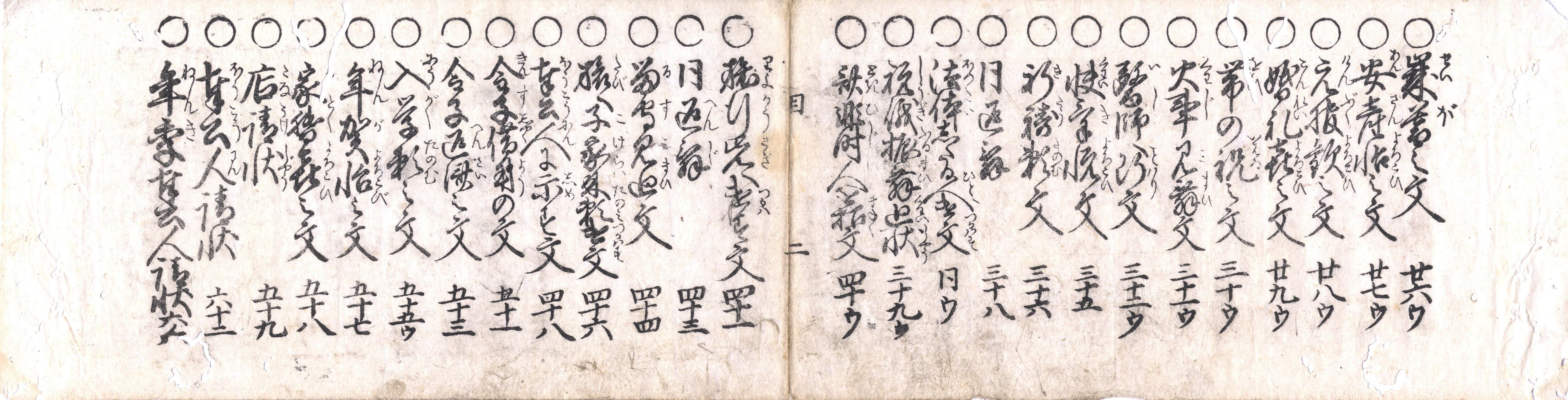 【備考】分類「往来物」。袋綴じ展開収録。『〈御家〉流行案文』は、式亭三馬作、文化11年刊『一筆啓上』を三切本仕立てに改編した用文章。「年始之文」から「家督喜之文」までの消息文48通をほぼ四季・五節句、通過儀礼等の佳節、また凶事やその他諸事の順で収録する。江戸の風物を取り入れた例文が数通あるほかは一般的な例文である。さらに末尾に、「店請状之事」から「養父手形」までの手形証文文例8通と、「年始のふみ」から「婚礼怡のふみ」までの女子消息文4通を収める。本文を大字・7行・所々付訓で記す。本書には三馬作の記載がないが、文政六年板『一筆啓上』(英平吉板)広告中に「流行案文(はやりあんもん)、式亭三馬作、臨泉堂書」と記す。