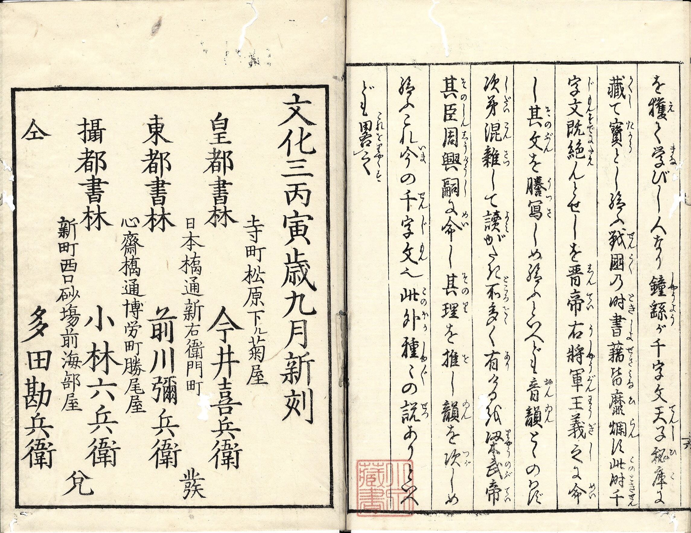 【年代等】文化3年9月刊。[大阪]多田勘兵衛ほか板。