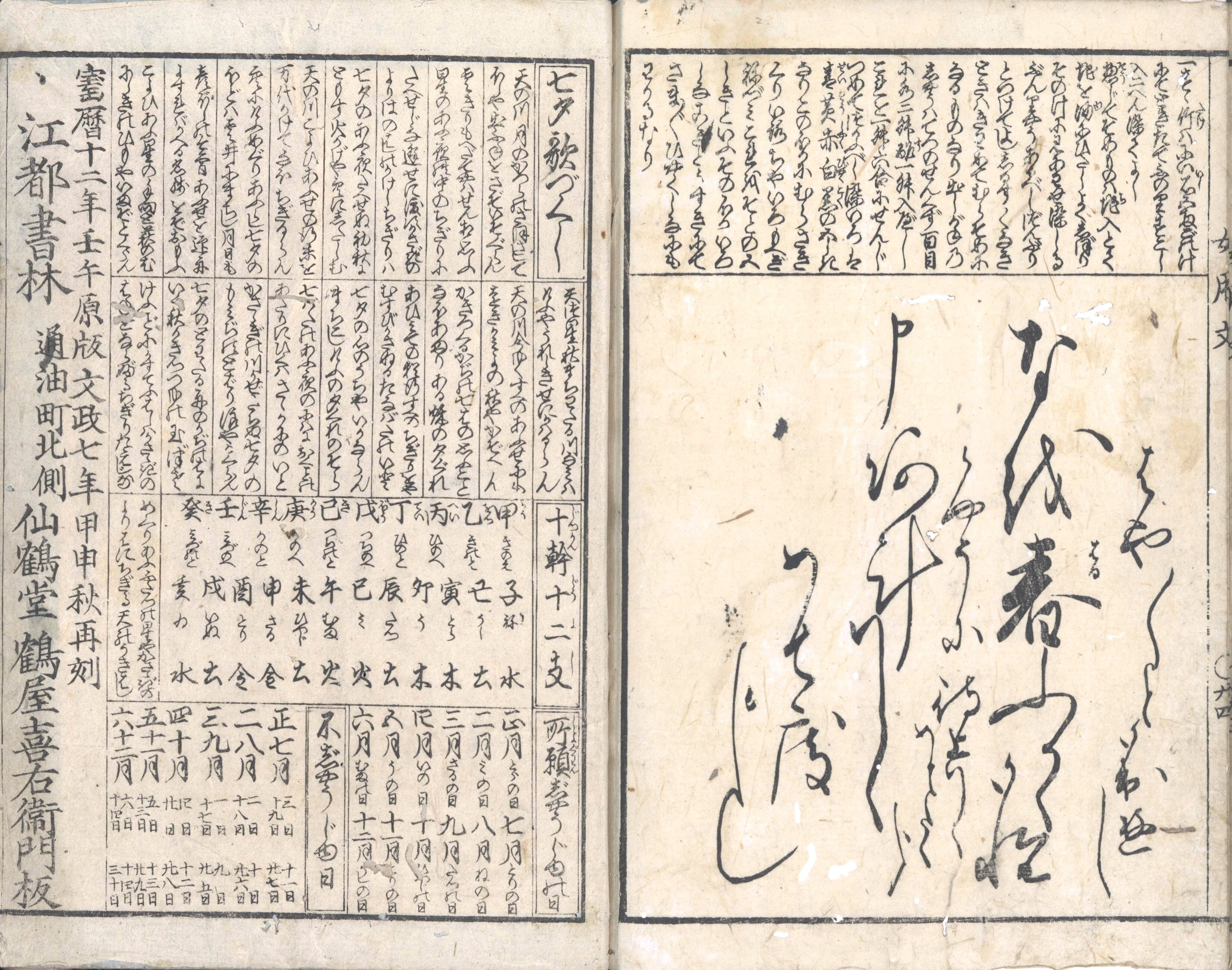 【年代等】文政7年秋刊。[江戸]鶴屋喜右衛門(仙鶴堂)板。