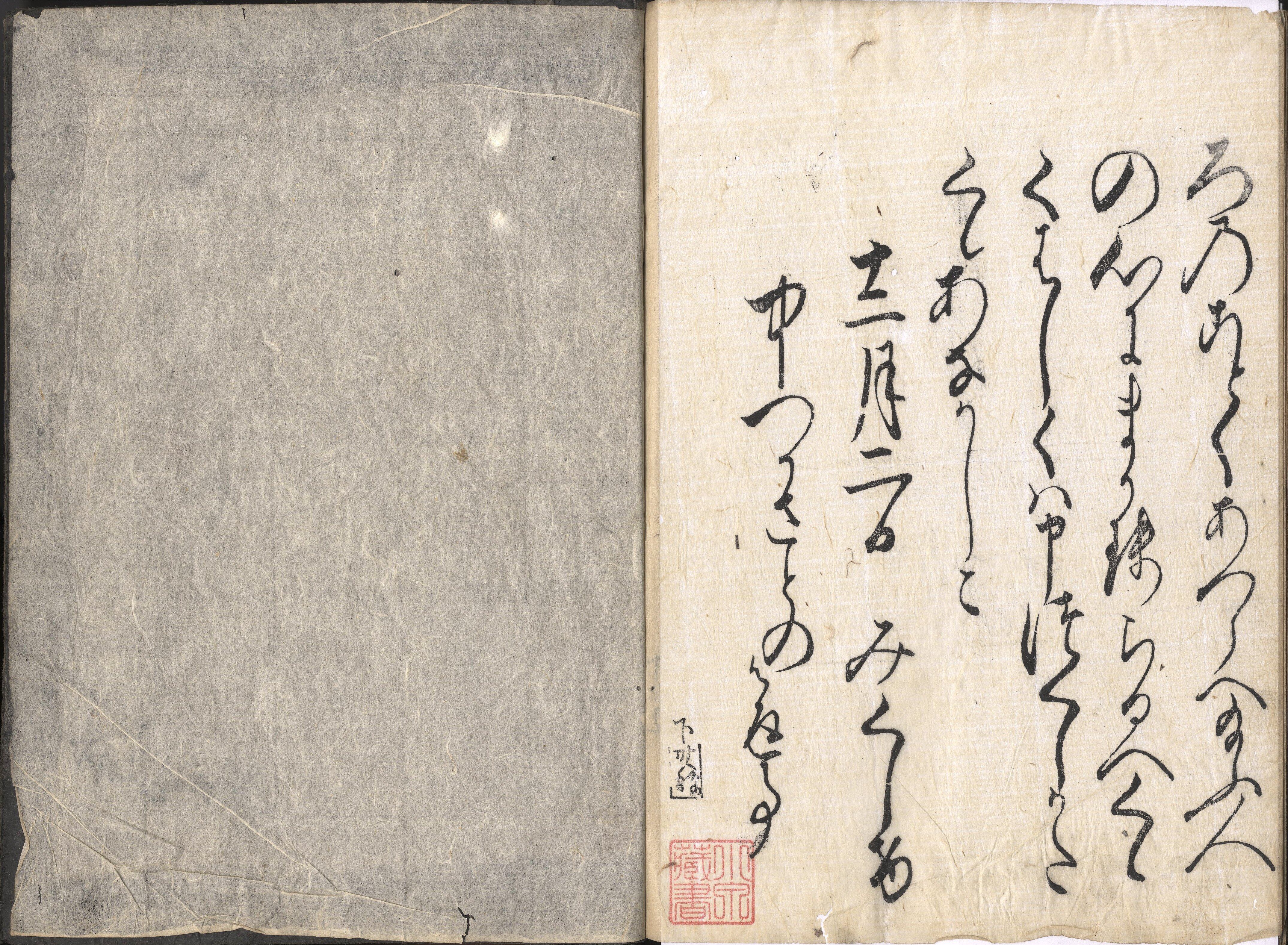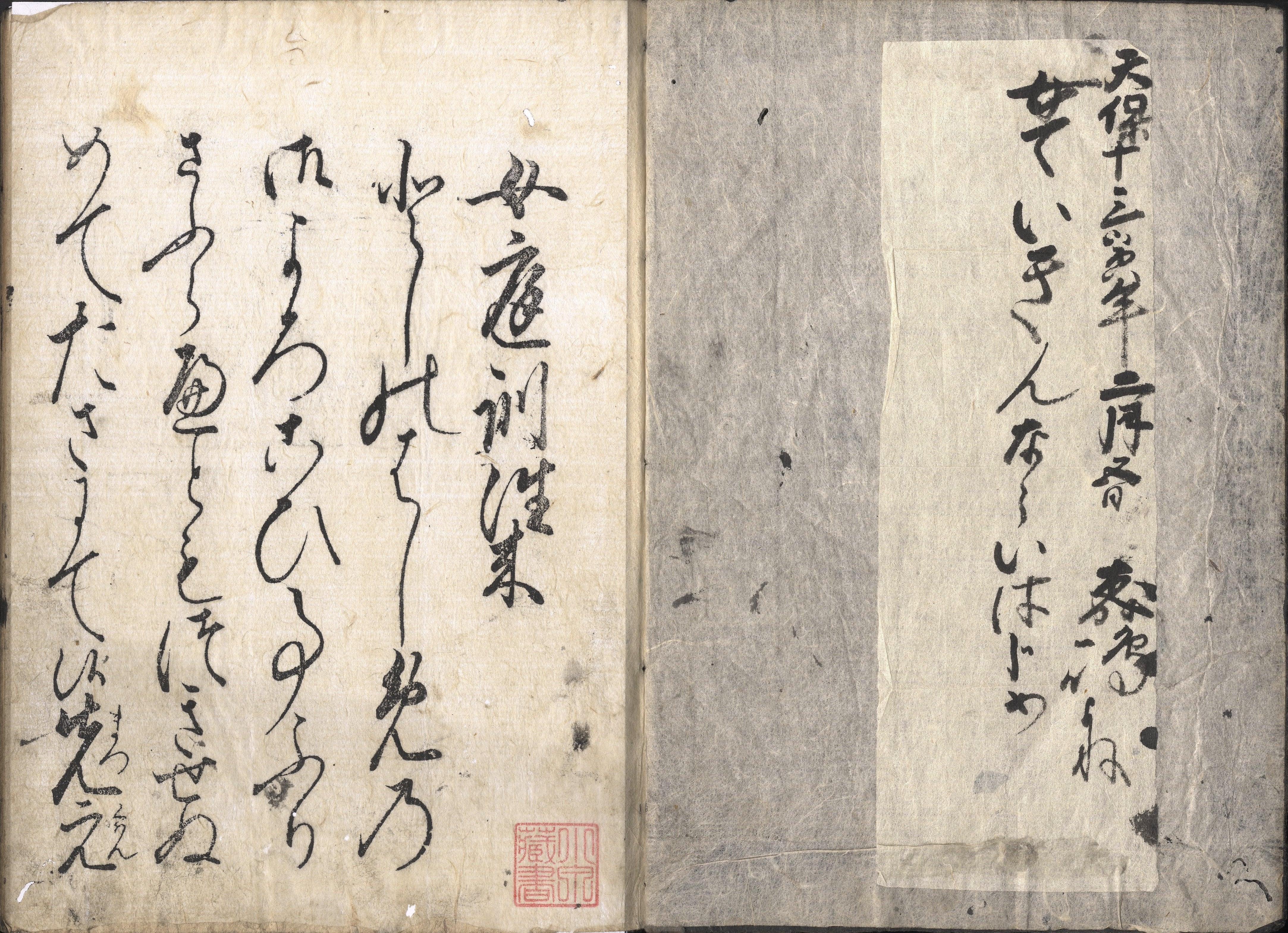 【備考】分類「往来物」。板元名は別本による。後半に後印改題1冊本『〈女訓日用〉女庭訓宝種』(京都・菊屋七郎兵衛板)を抄録。『女庭訓往来』は、江戸中・後期にかなりの普及(板種約70種)を見た代表的な女子用往来で、本書はその初板本。代々女筆を輩出した窪田家(窪田宗保)の娘・やすによる女筆手本で、『女庭訓〈女筆〉』の題簽を有する3冊本である。上巻には1~4月、中巻に5~8月、下巻に9~12月の各月往復2通、合計24通の女文を収録する。