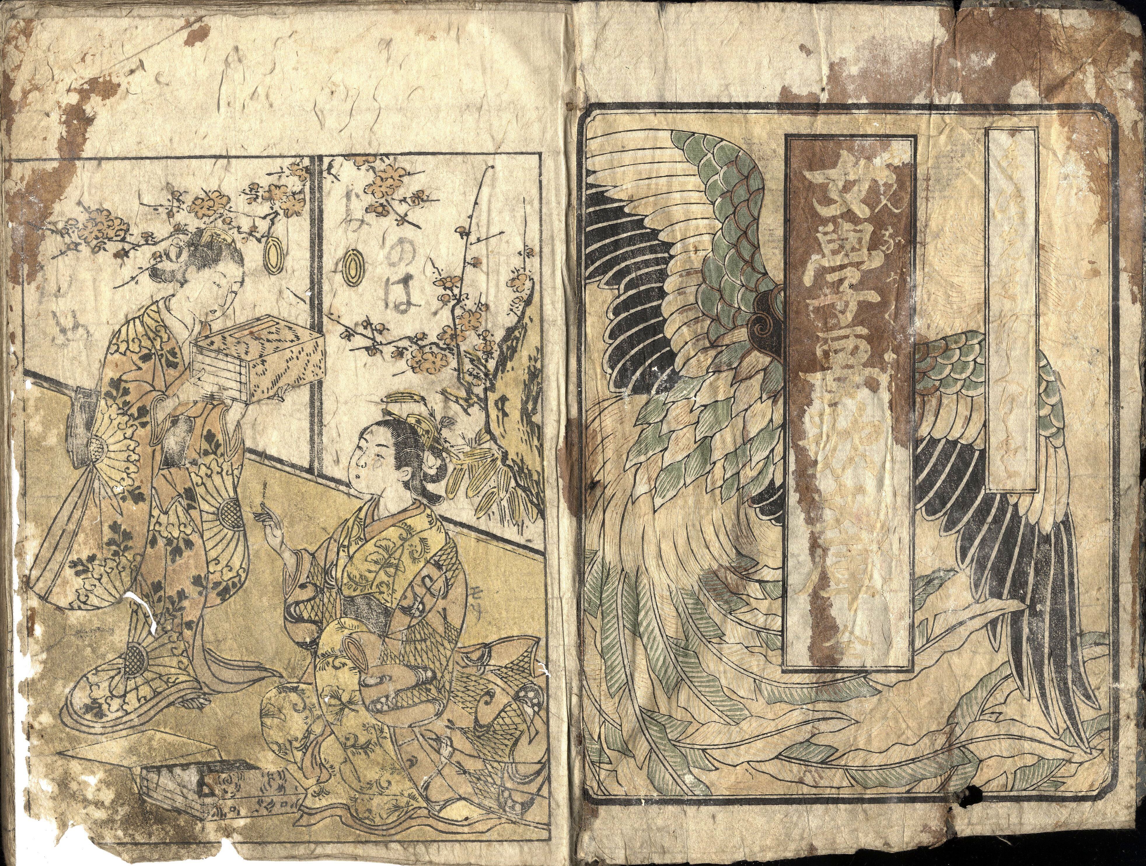 【備考】分類「往来物」。江戸中期を代表する庶民女性用の礼法書・女子用往来『女諸礼綾錦』の改題本。万治3年刊『女諸礼集』に基づき、その他の記事や全体の構成を元禄5年刊『女重宝記』にならって編んだもの。口絵・前付に相当する「序の巻」を除いた本文は七巻から成る。一の巻は、「女教真見鑑(ますみのかがみ)」「婦人七去の事」など女性教養一般について。二の巻「婚礼の巻」は、「結納(ゆいいれ)の事」以下婚礼儀式全般と婚式後の付随的慣習について。三の巻「懐妊の巻」は、「懐妊か懐妊にあらざるを知る事」以下、産前から産後までの養生や、子どもの養育、通過儀礼について。四の巻「通方(かよいかた)の巻」は、「酌取りやうの事」以下、酒食の際の給仕法で、もてなす側(主人方)の礼法。五の巻「飲食給様の巻」は、小項目を立てずに食礼の教えを列挙したもので、前巻に対する客方礼法である。六の巻・七の巻はいずれも「諸芸嗜之巻」で、六巻が手習い、手紙・短冊・色紙の書き方、和歌の心得、七巻が歌がるた・貝覆い、茶道・香道について述べ、末尾に妙薬・染物・裁縫・包み方・大和言葉等の記事を補う。